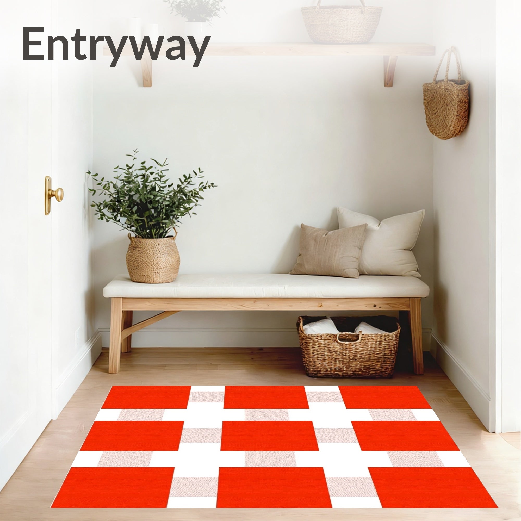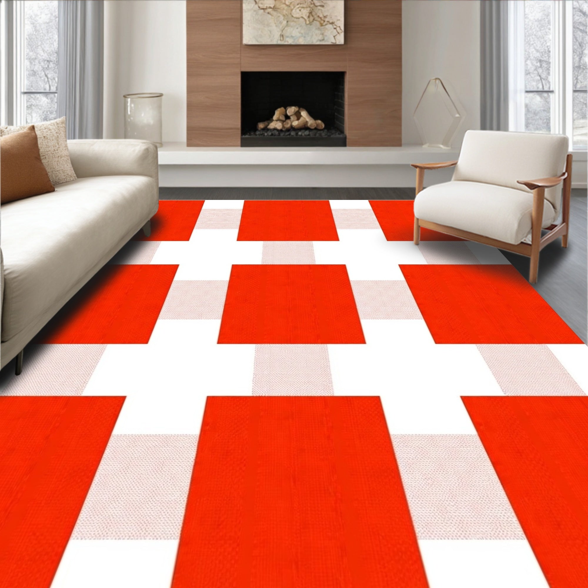 Ultra Soft Area Rug, Non Slip, Stain Resistant, Washable Area Rugs for Living Room, Bedroom, Harvest Checkered with Bold Autumn Hues(Red) Overview: