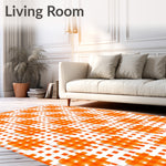 Ultra Soft Area Rug, Non Slip, Stain Resistant, Washable Area Rugs for Living Room, Bedroom, Harvest Checkered with Classic Autumn Grid Design(Orange) Overview: