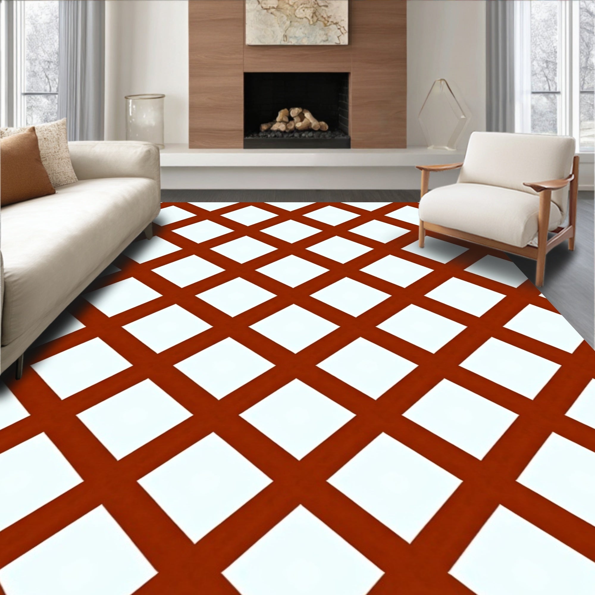 Flatwoven High Traffic Area Rug, Harvest Crisscross Gingham Classic Elegant Sophisticated, Non Slip, Stain Resistant, Washable Area Rugs for Living Room, Bedroom (Brown) Overview: