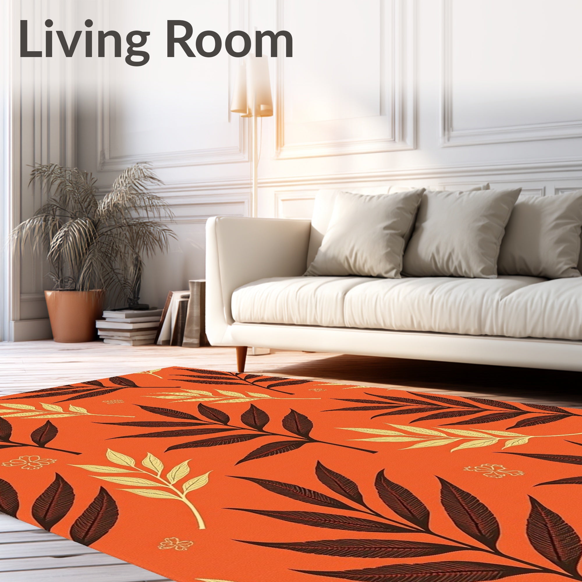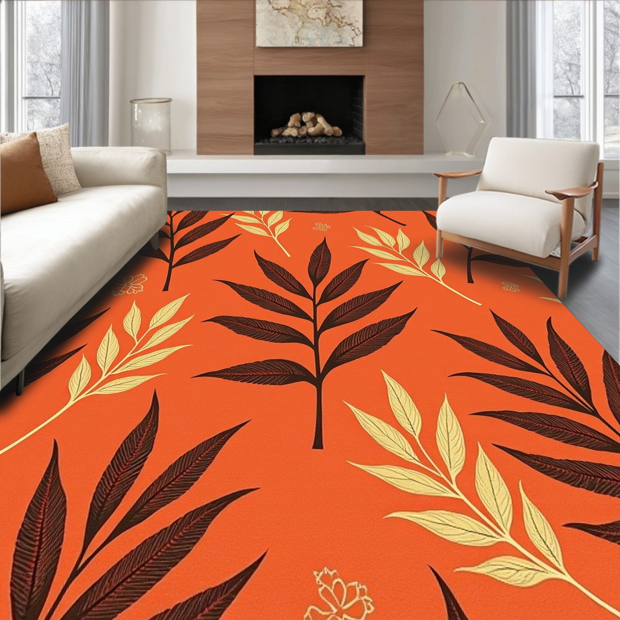 Ultra Soft Area Rug, Non Slip, Stain Resistant, Washable Area Rugs for Living Room, Bedroom, Harvest Eucalyptus Foliage Decorative With Elegant Autumn Motif(Orange) Overview: