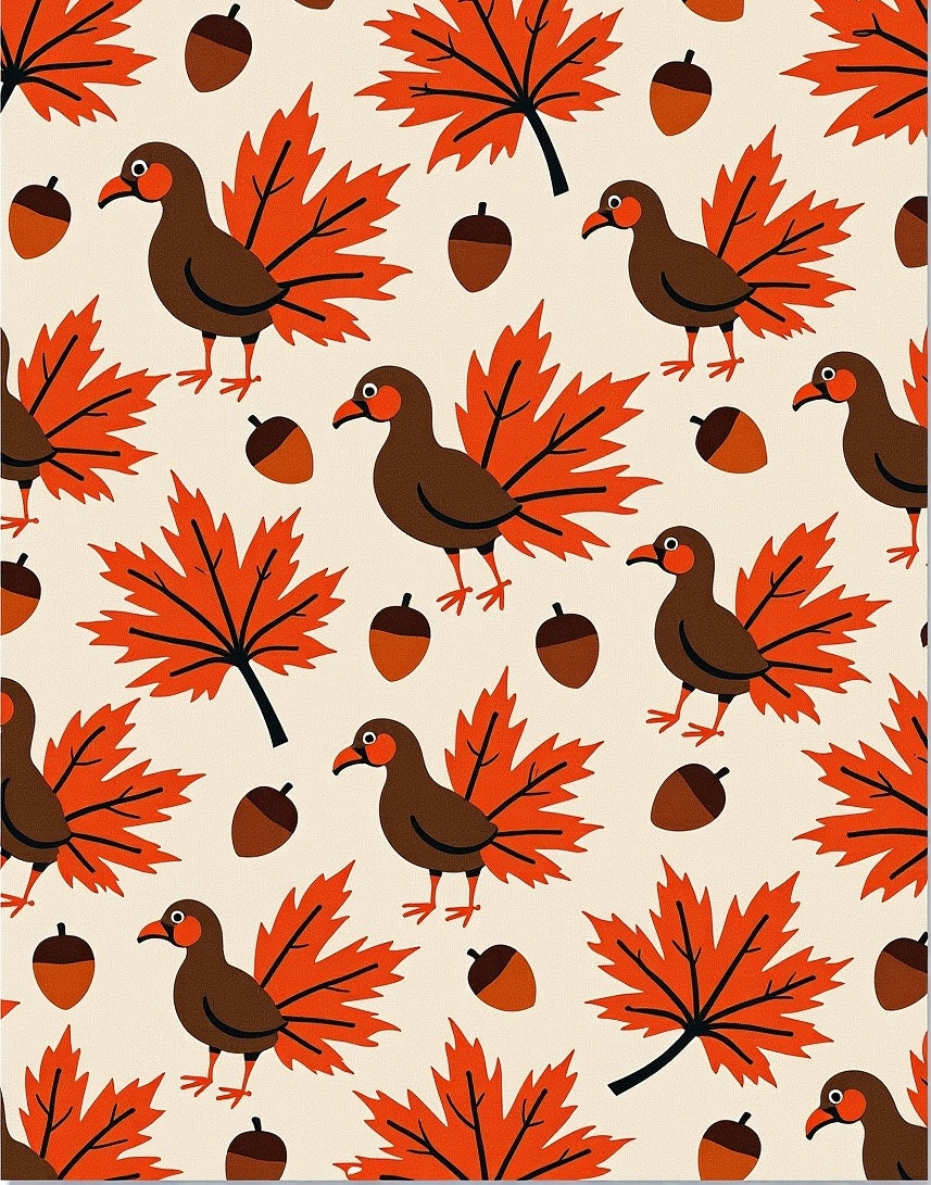 Harvest Feast Birds Motif with Maple Leaves and Acorns(Beige)