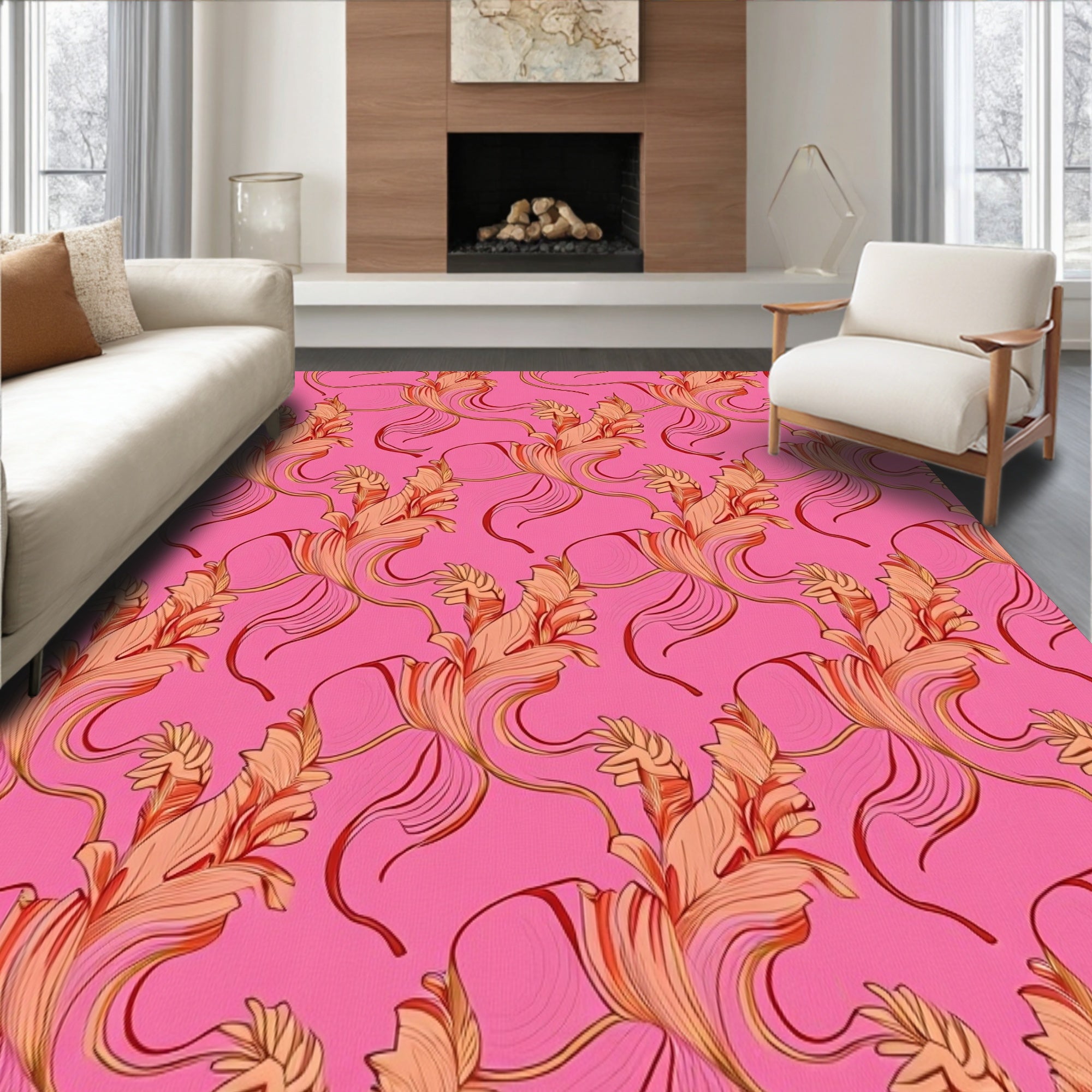 Ultra Soft Area Rug, Non Slip, Stain Resistant, Washable Area Rugs for Living Room, Bedroom, Harvest Festival Elegant Decorative Accent(Pink) Overview:
