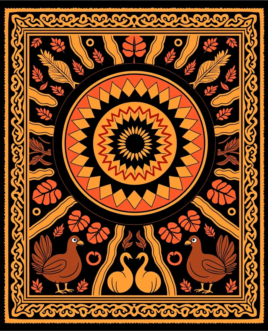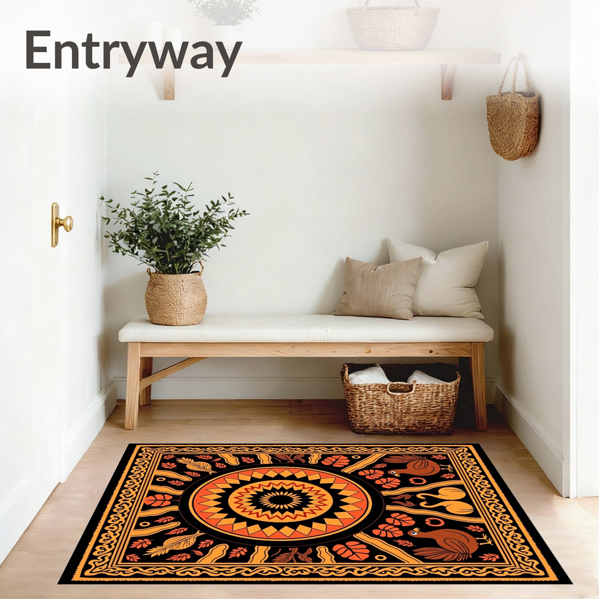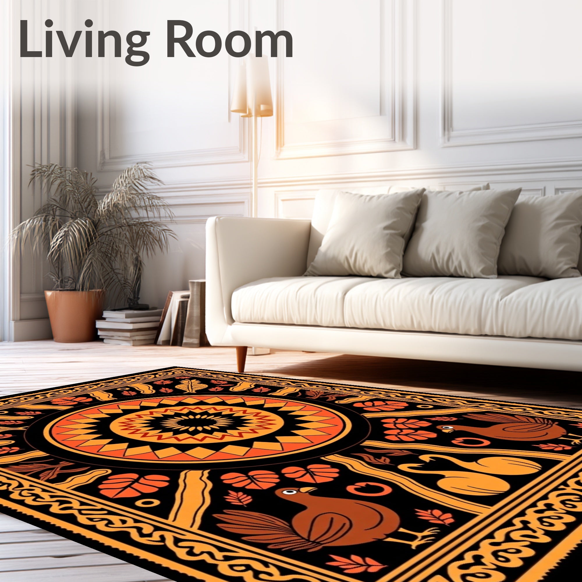 Ultra Soft Area Rug, Non Slip, Stain Resistant, Washable Area Rugs for Living Room, Bedroom, Harvest Festival Gobbler Medallion(Black) Overview: