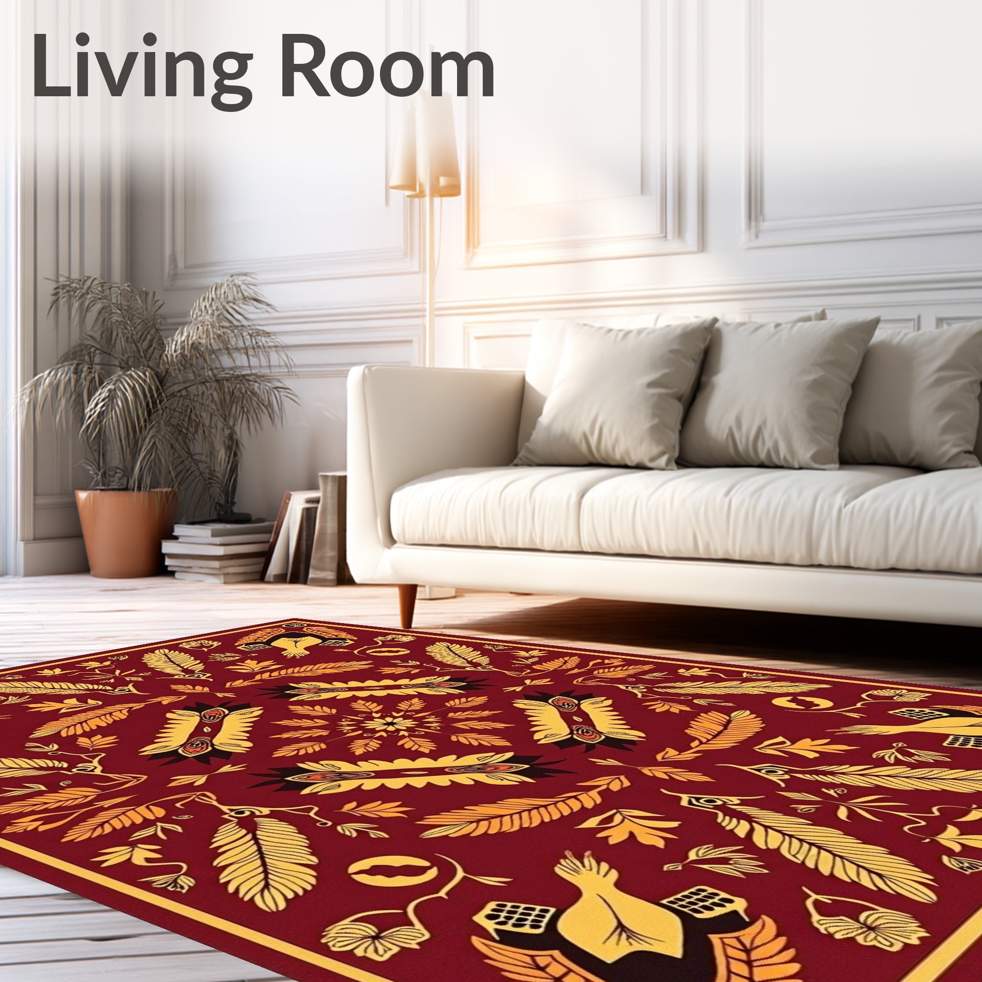 Ultra Soft Area Rug, Non Slip, Stain Resistant, Washable Area Rugs for Living Room, Bedroom, Harvest Festival Gobbler Motif Area with Rubber Backing(Red) Overview: