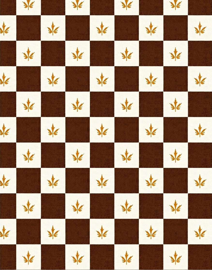 Harvest Gingham Doormat with Autumn Maple Leaf Motifs(Brown)