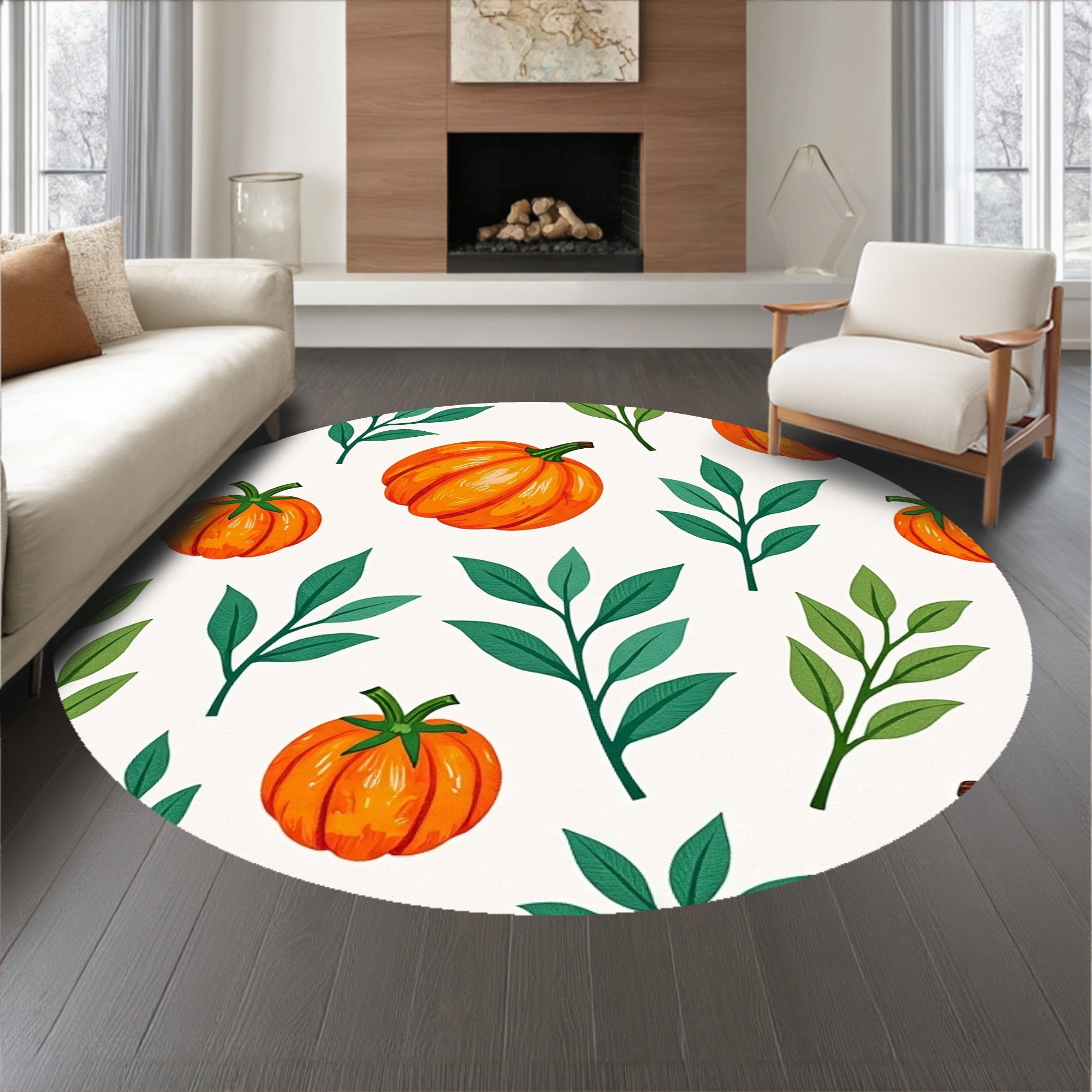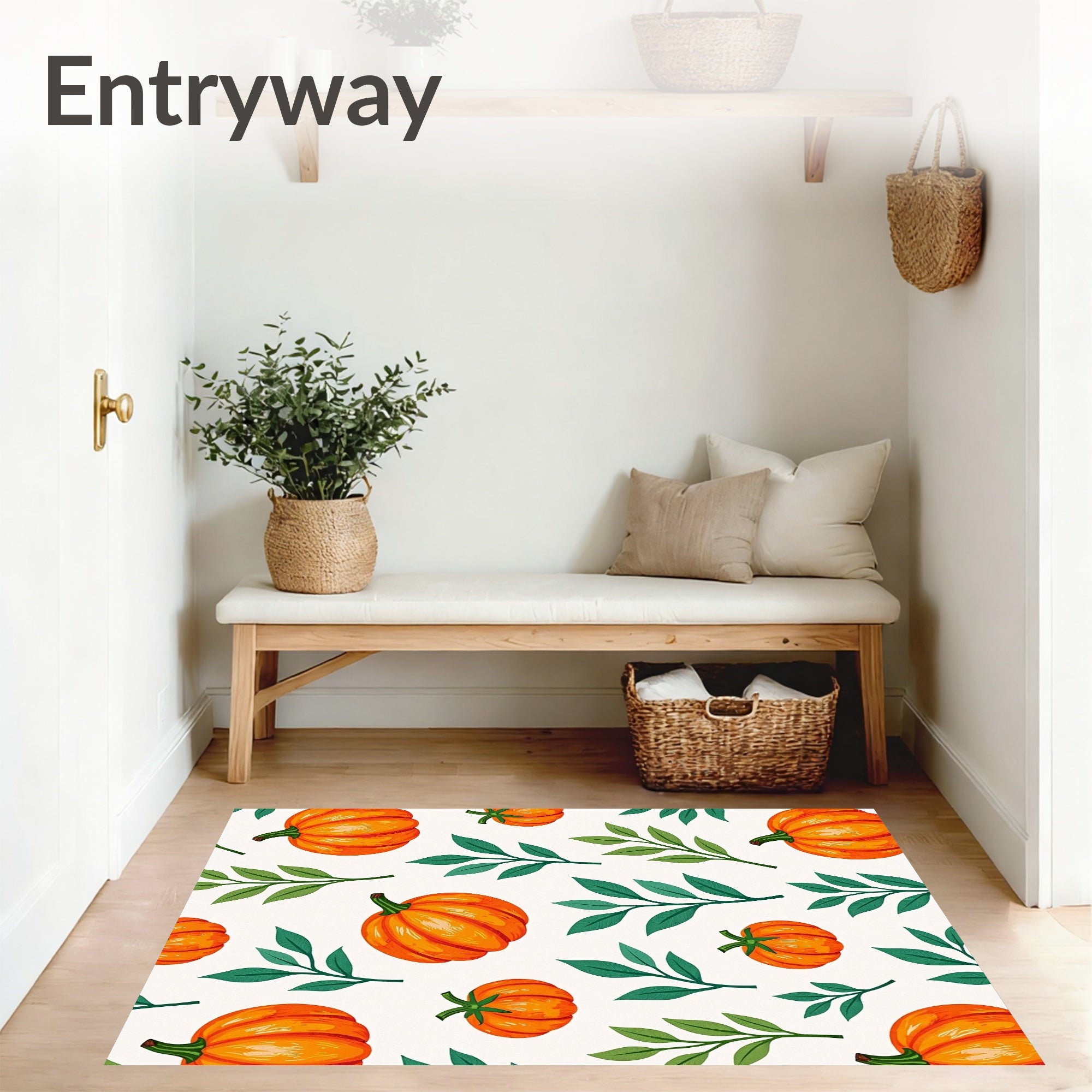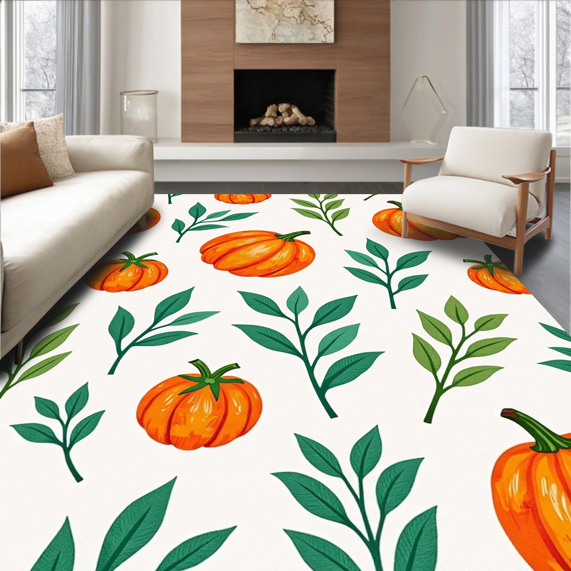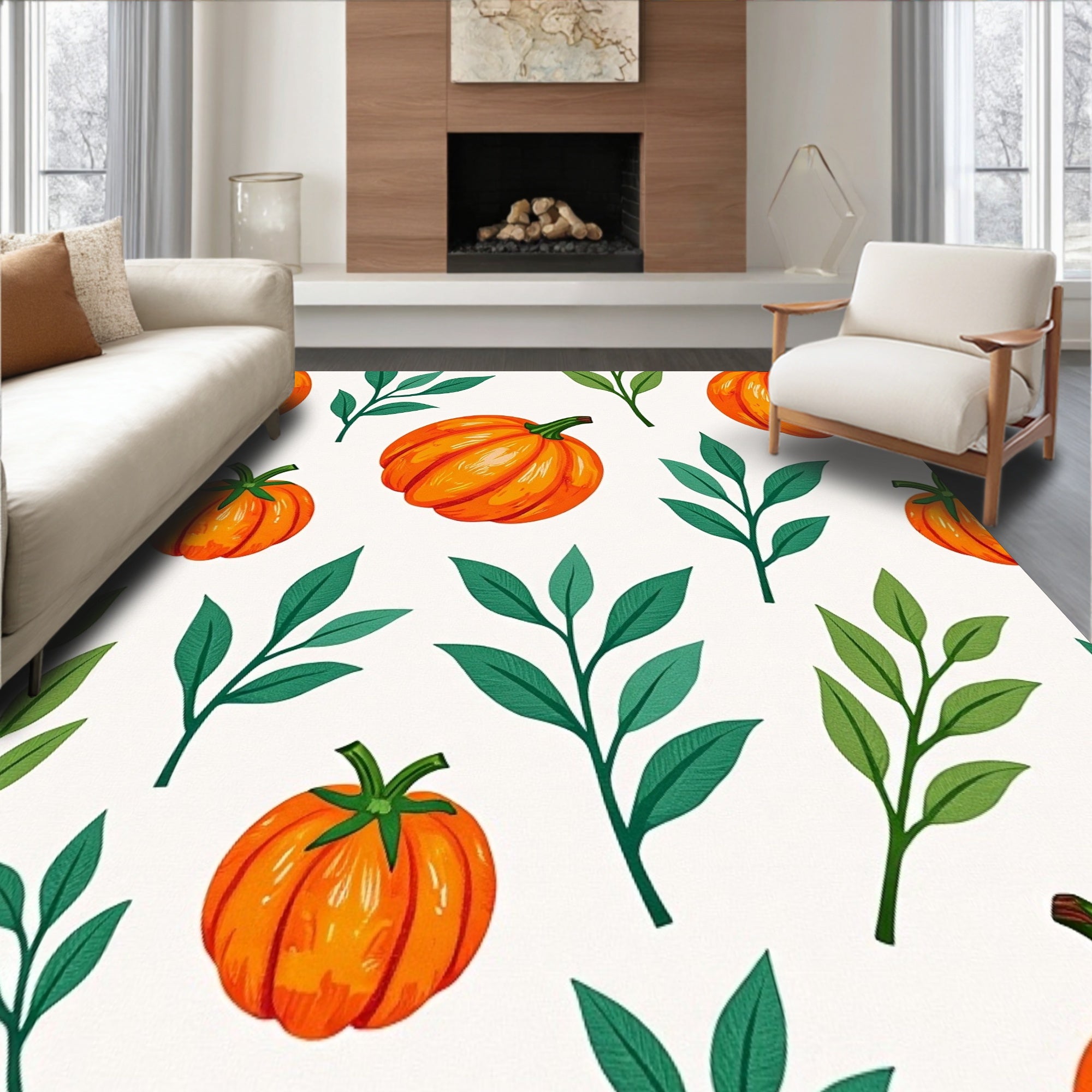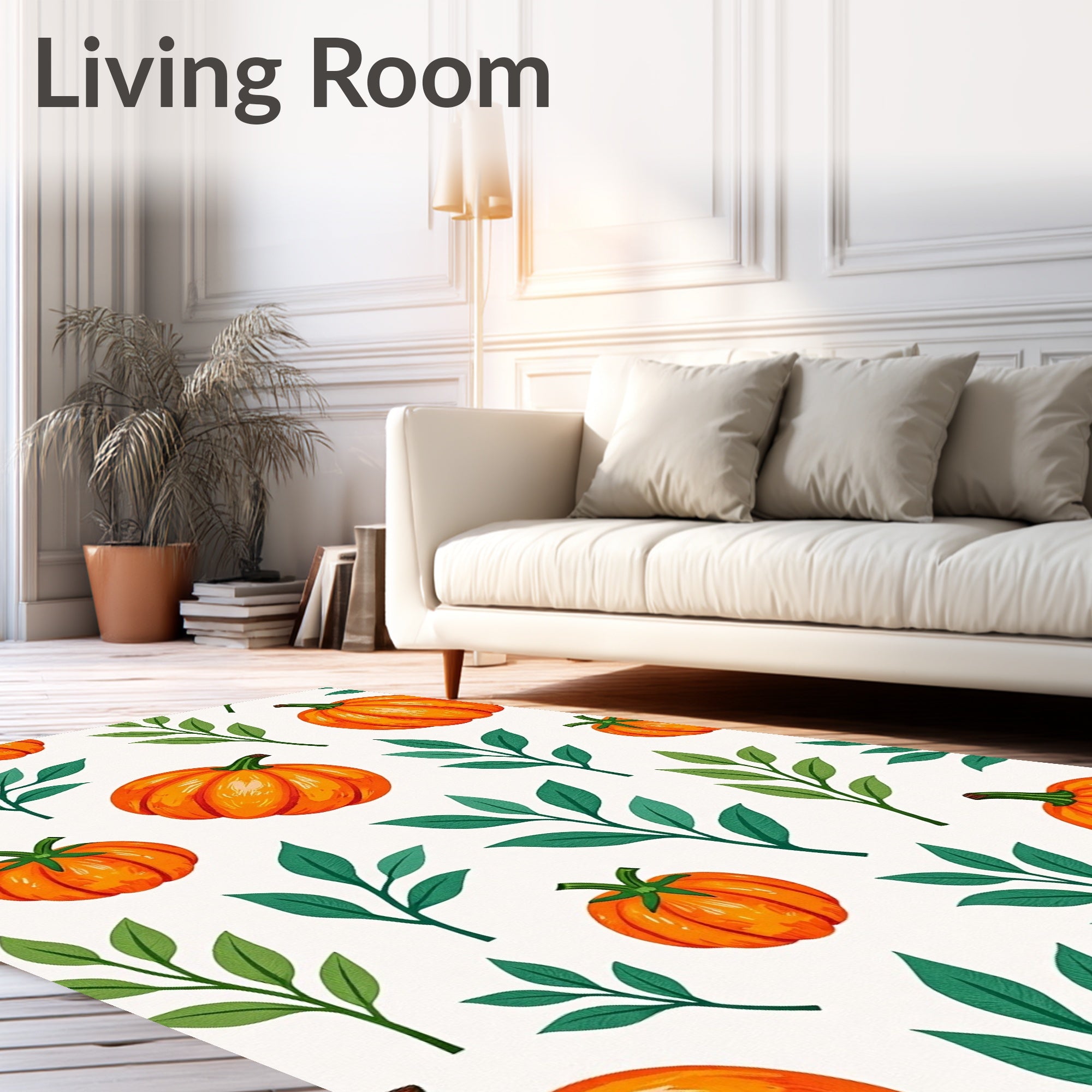 Ultra Soft Area Rug, Non Slip, Stain Resistant, Washable Area Rugs for Living Room, Bedroom, Harvest Gourd Medley with Eucalyptus Sprigs(Orange) Overview:
