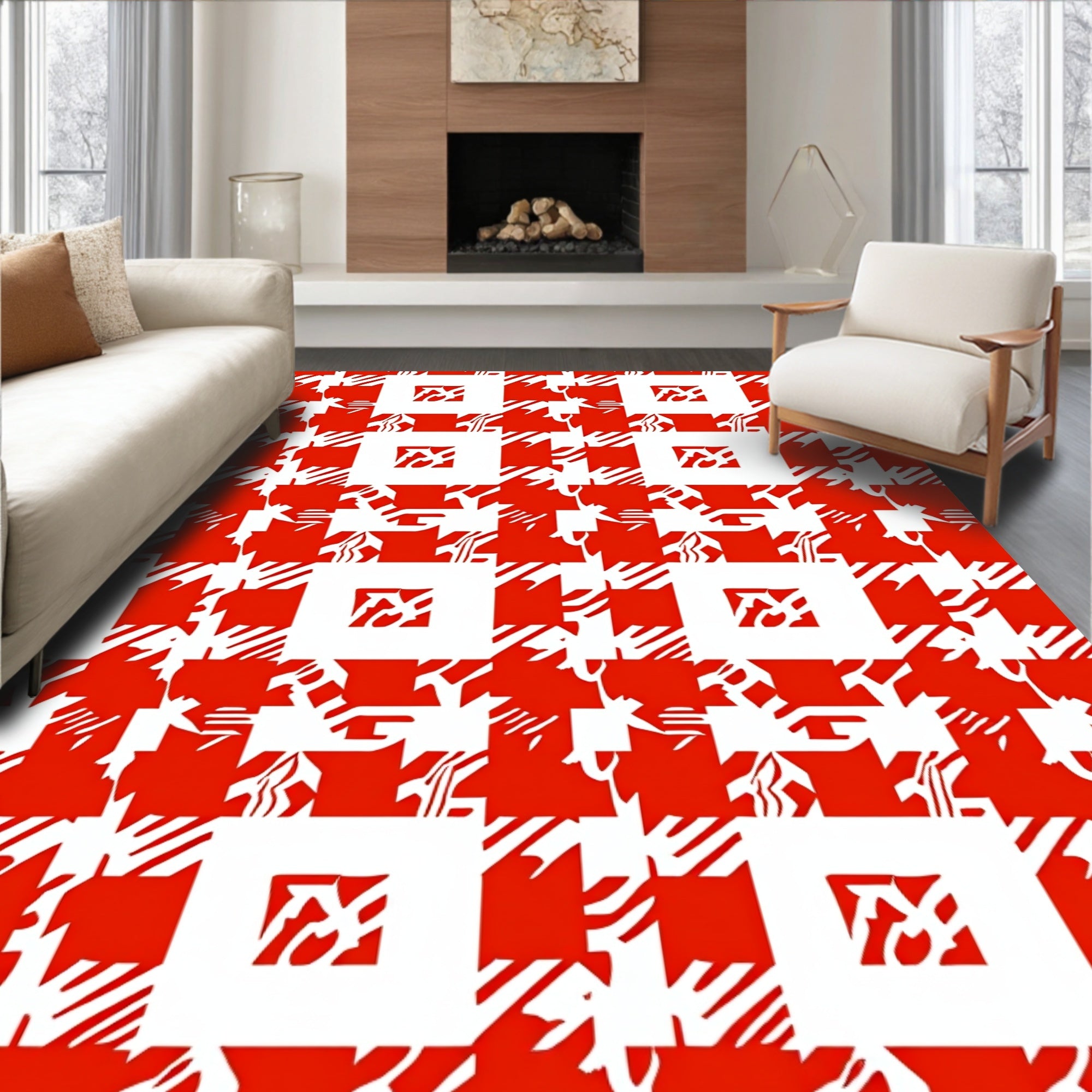 Ultra Soft Area Rug, Non Slip, Stain Resistant, Washable Area Rugs for Living Room, Bedroom, Harvest Lattice Decorative Farmhouse Plaid Buffalo Checkered(Red) Overview: