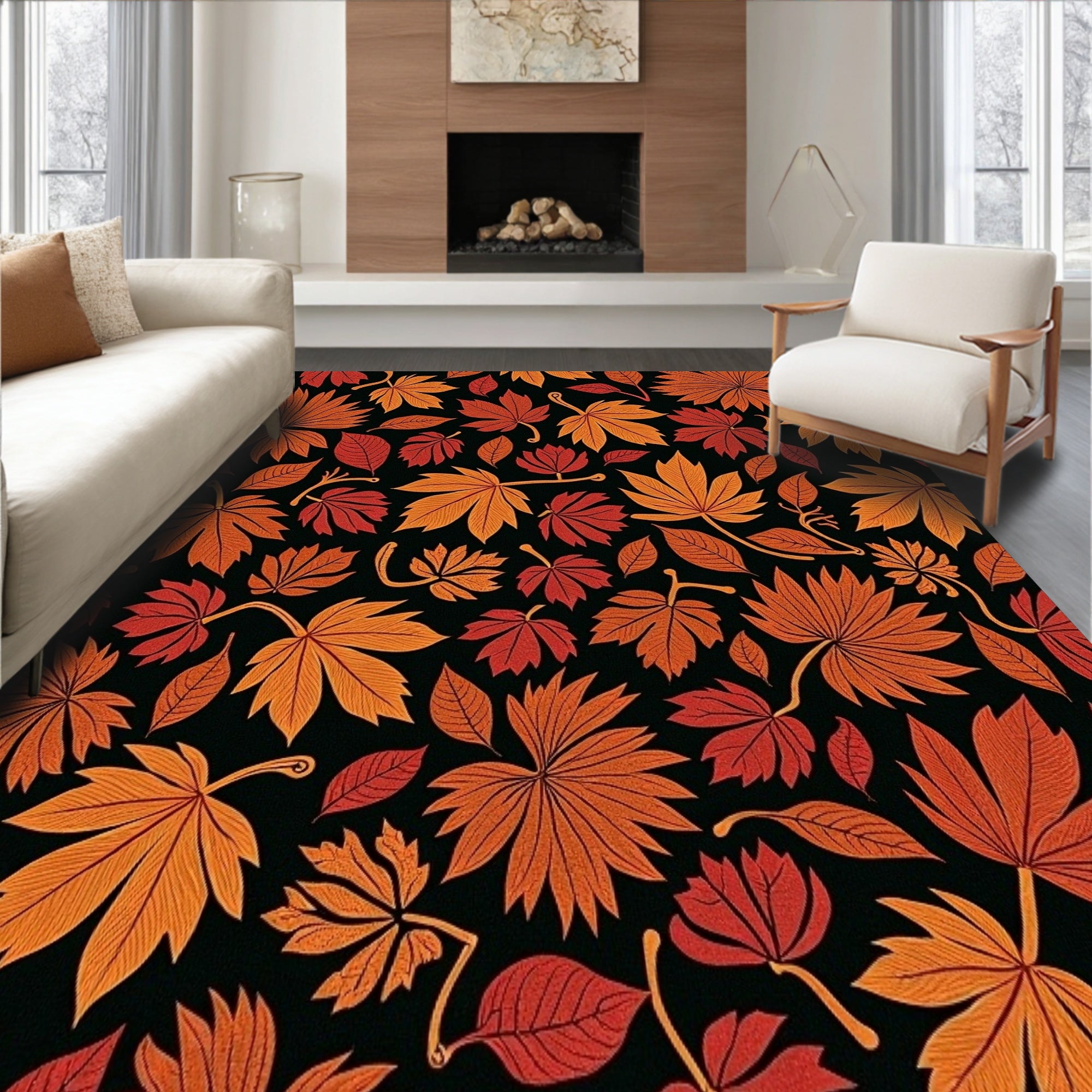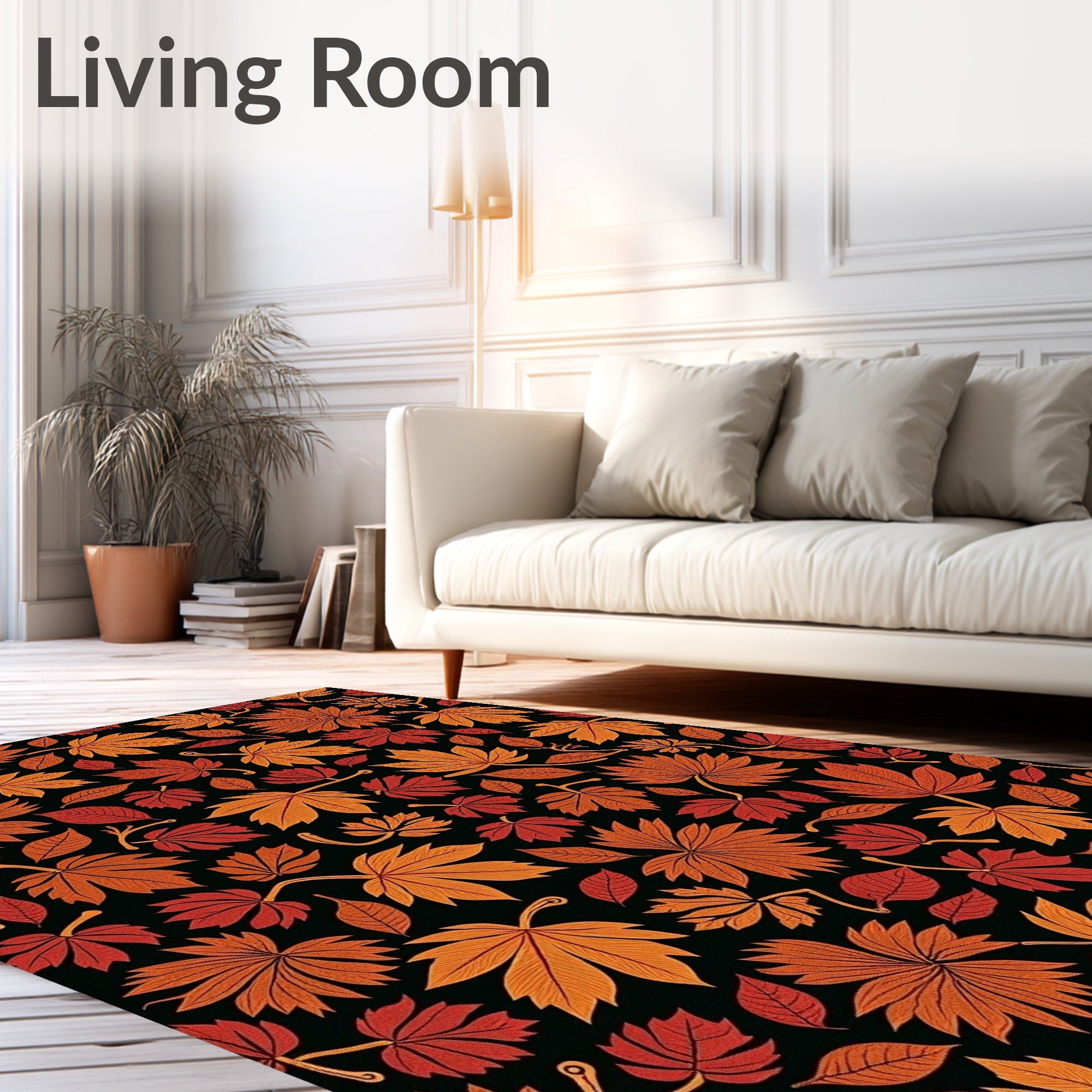 Ultra Soft Area Rug, Non Slip, Stain Resistant, Washable Area Rugs for Living Room, Bedroom, Harvest Maple Leaf Cascade Area with Swirling Foliage Design(Black) Overview: