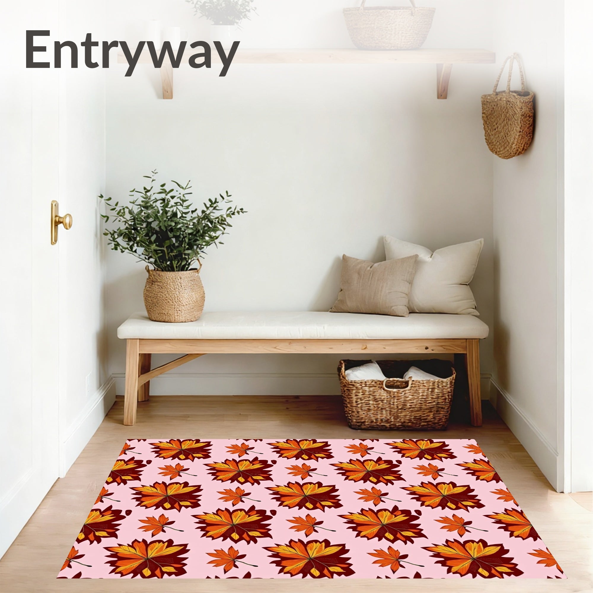 Ultra Soft Area Rug, Non Slip, Stain Resistant, Washable Area Rugs for Living Room, Bedroom, Harvest Maple Leaf Cascade with Botanical Autumn Foliage Design(Pink) Overview: