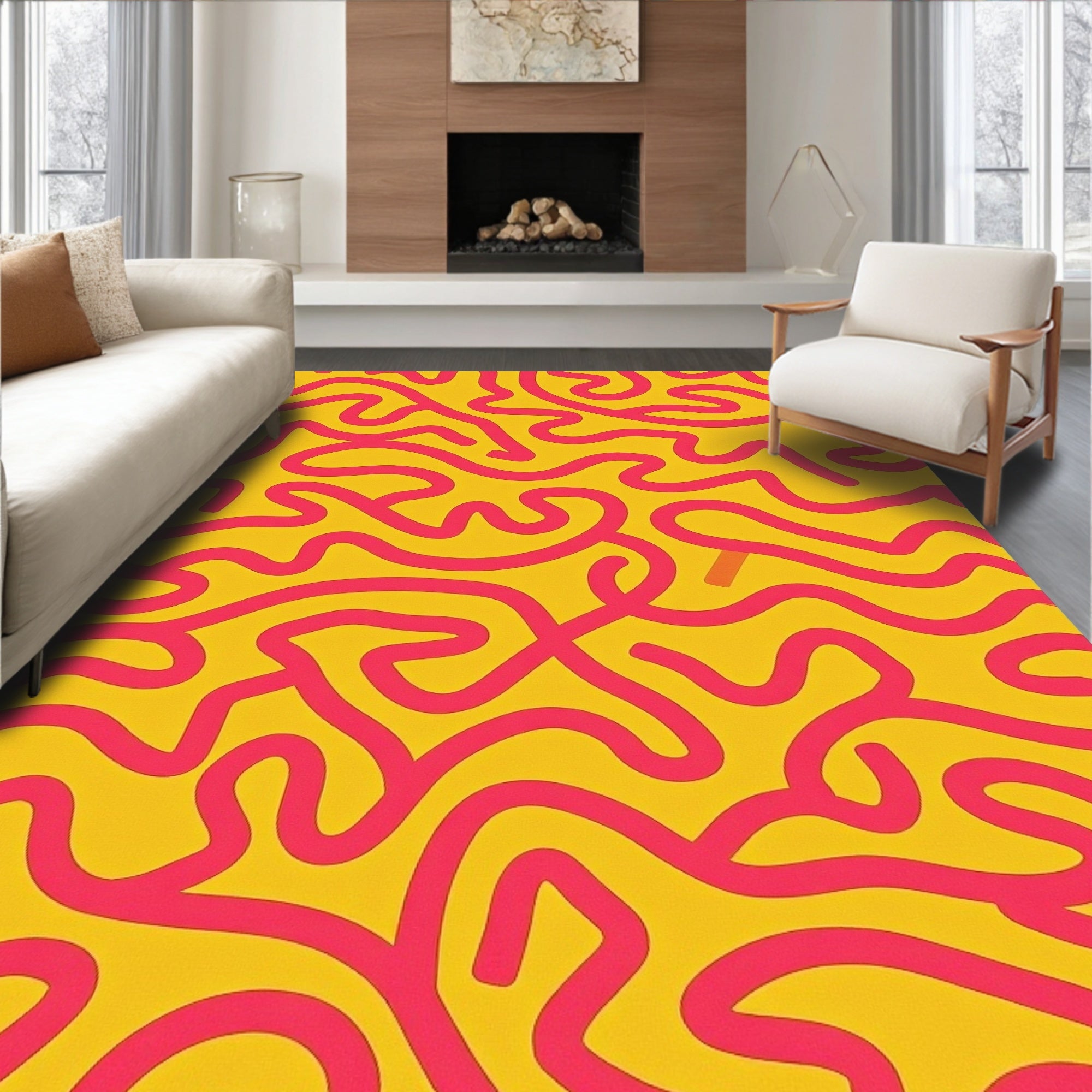 Ultra Soft Area Rug, Non Slip, Stain Resistant, Washable Area Rugs for Living Room, Bedroom, Harvest Maze Mosaic Flow Accent(Yellow) Overview: