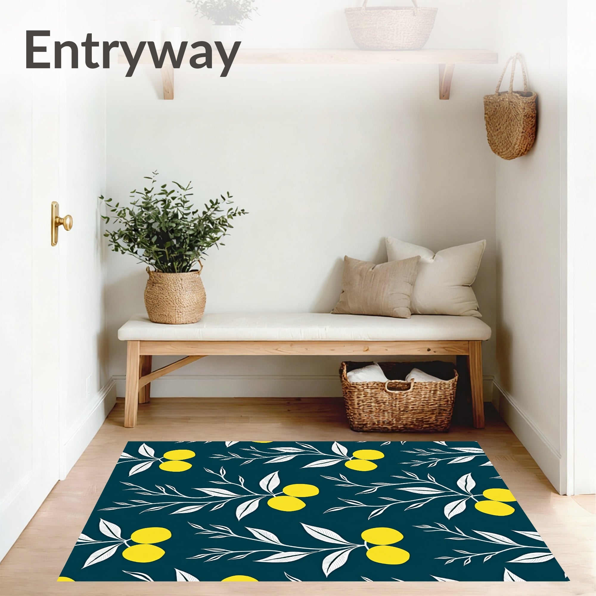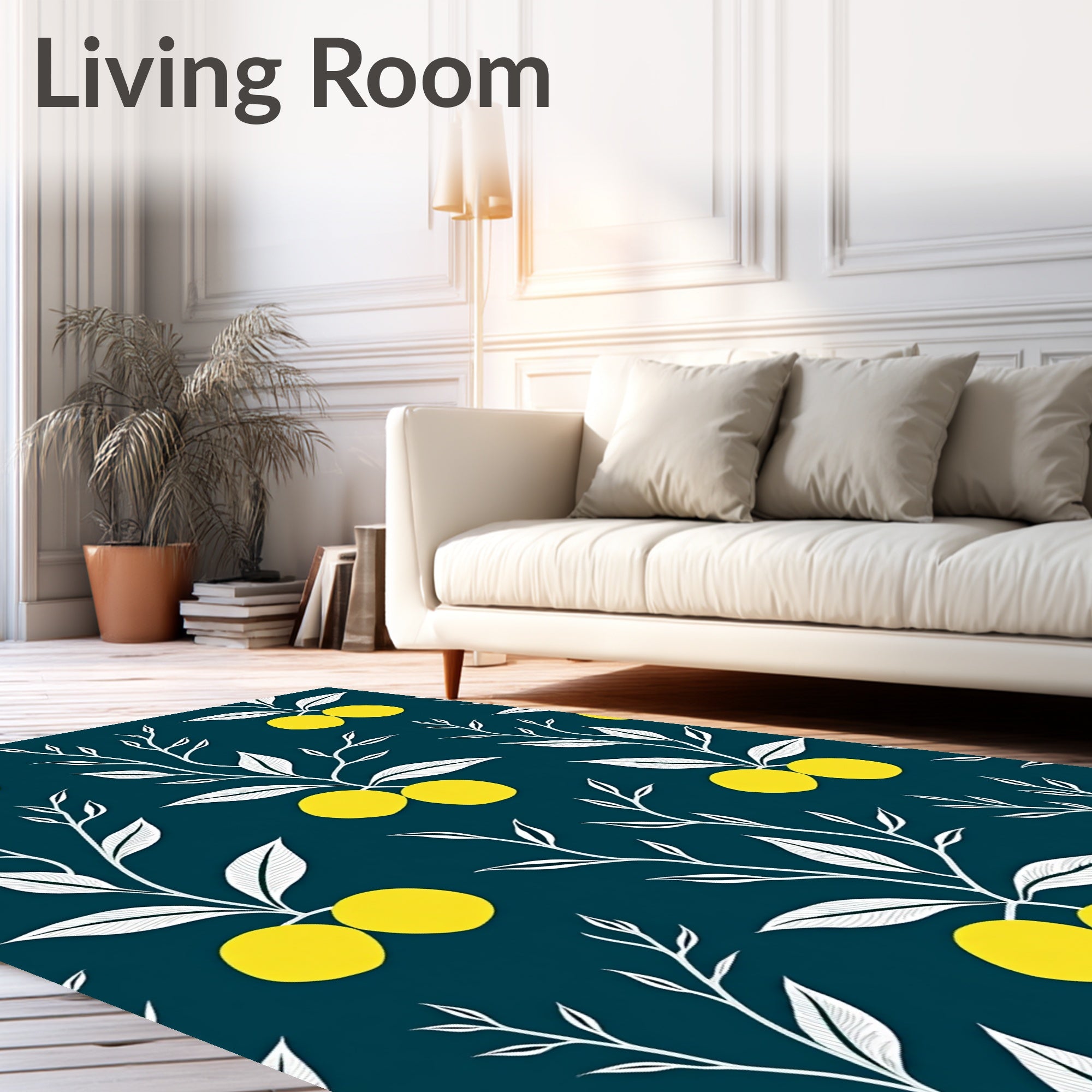 Ultra Soft Area Rug, Non Slip, Stain Resistant, Washable Area Rugs for Living Room, Bedroom, Harvest Moon Apple Grove Decorative Semi Circle(Blue) Overview: