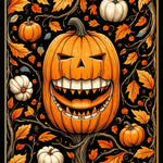 Harvest Moon Pumpkin Medallion Circular Tapestry(Orange)