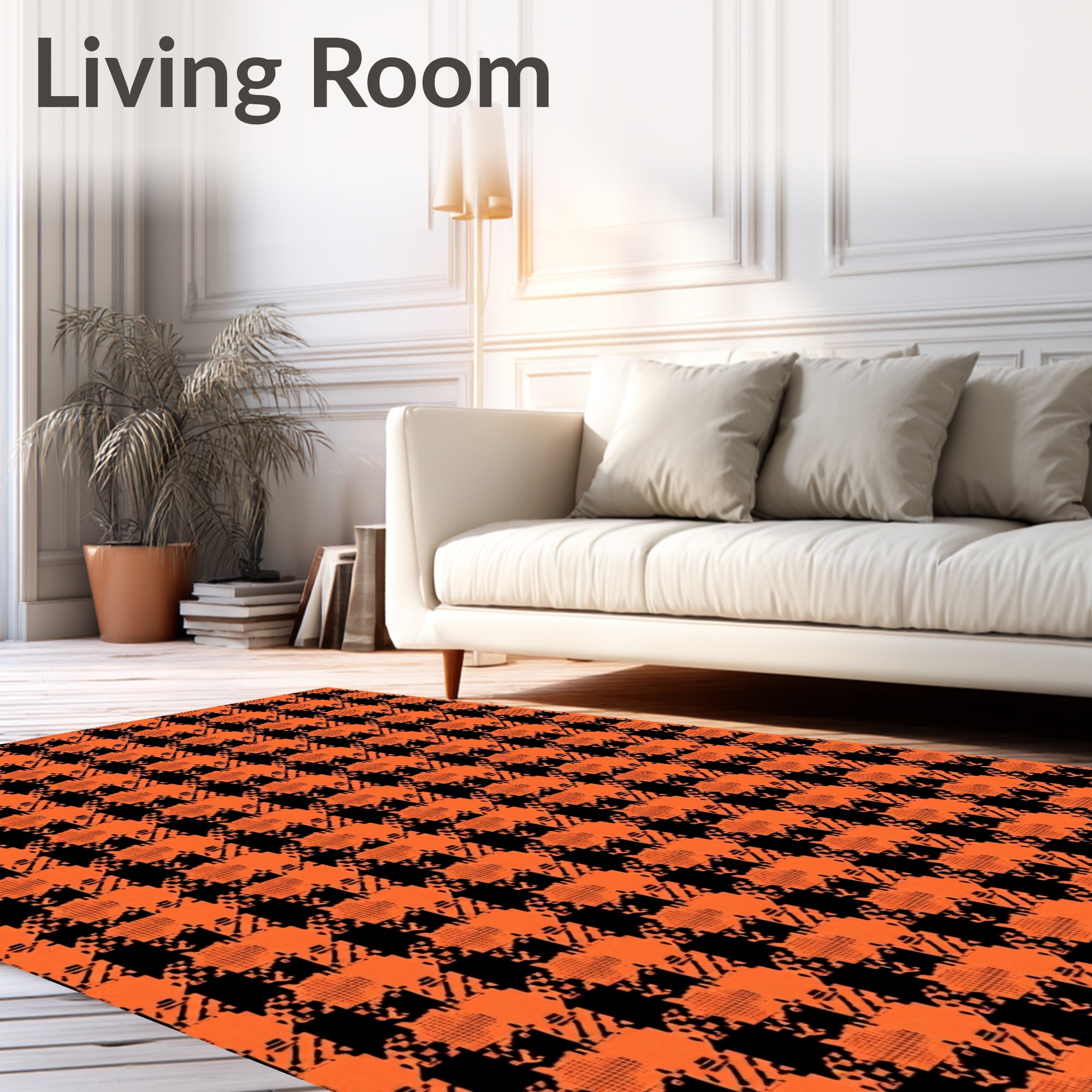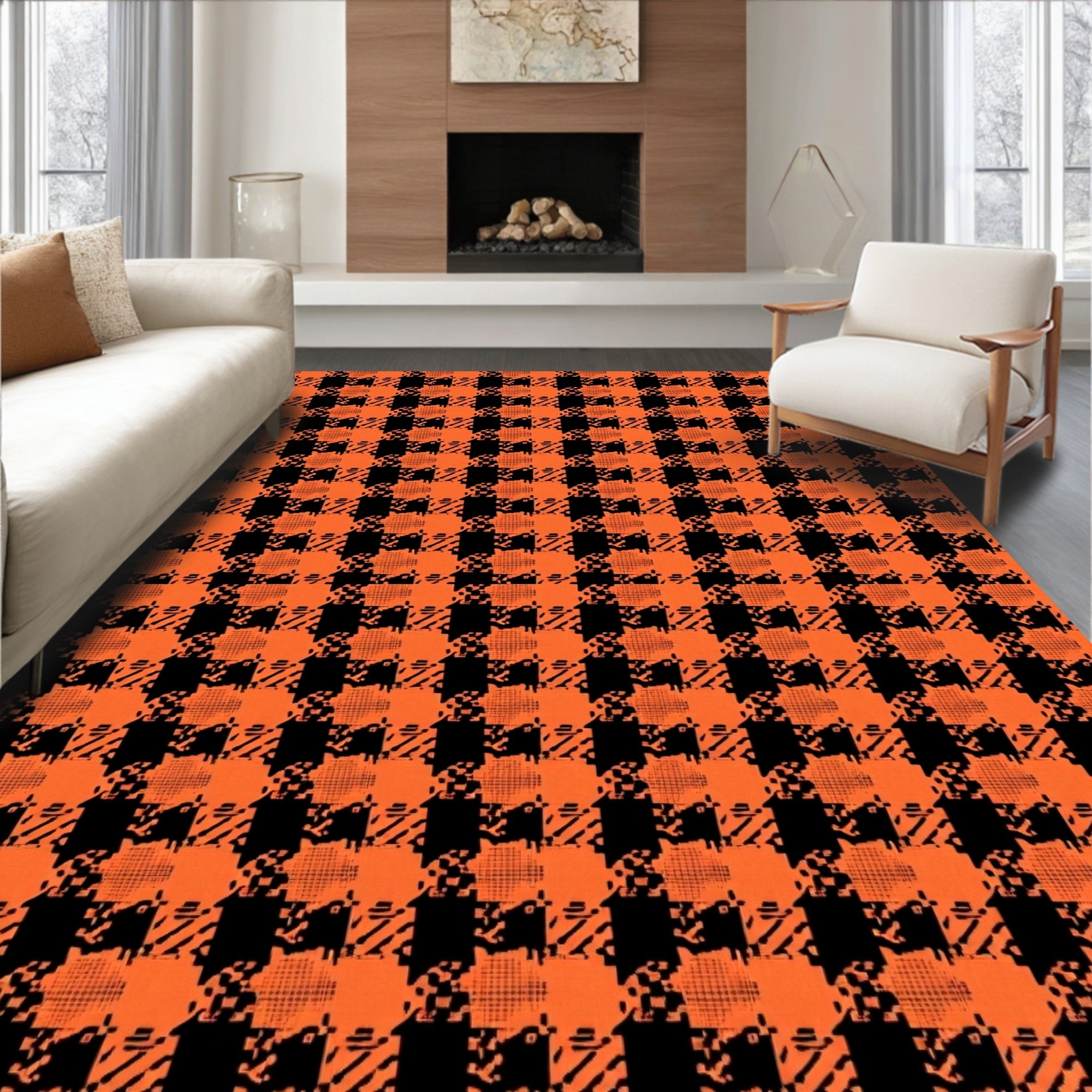 Ultra Soft Area Rug, Non Slip, Stain Resistant, Washable Area Rugs for Living Room, Bedroom, Harvest Plaid Check with Interlocking Classic Lattice Motif(Black) Overview: