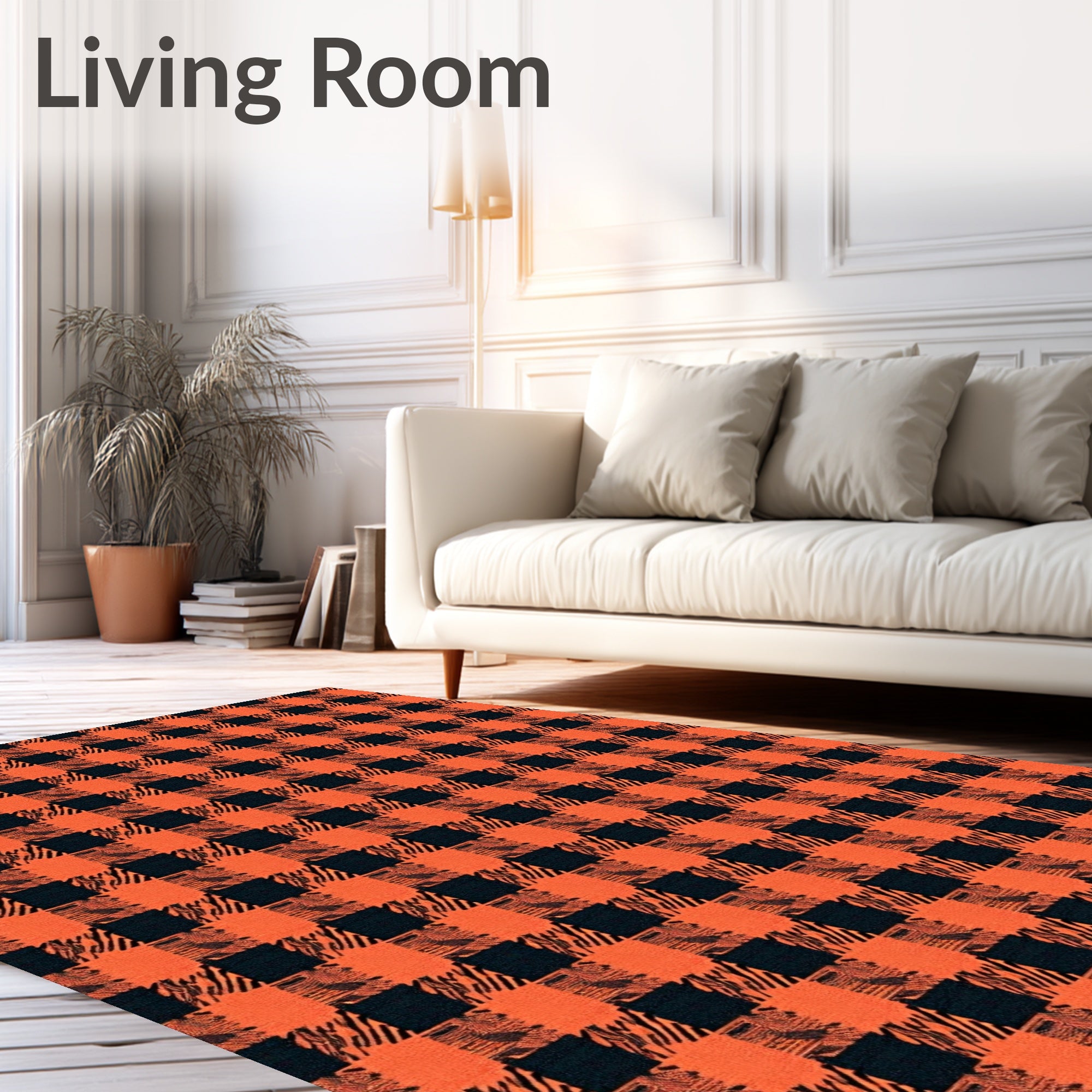 Ultra Soft Area Rug, Non Slip, Stain Resistant, Washable Area Rugs for Living Room, Bedroom, Harvest Plaid Checkered with Houndstooth Accent Motifs(Black) Overview: