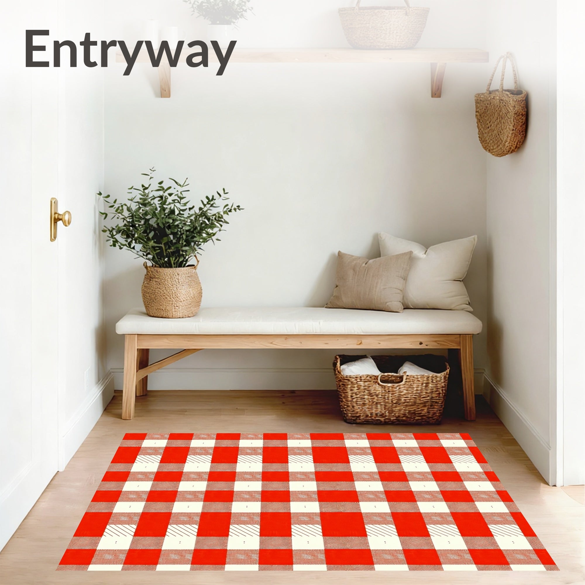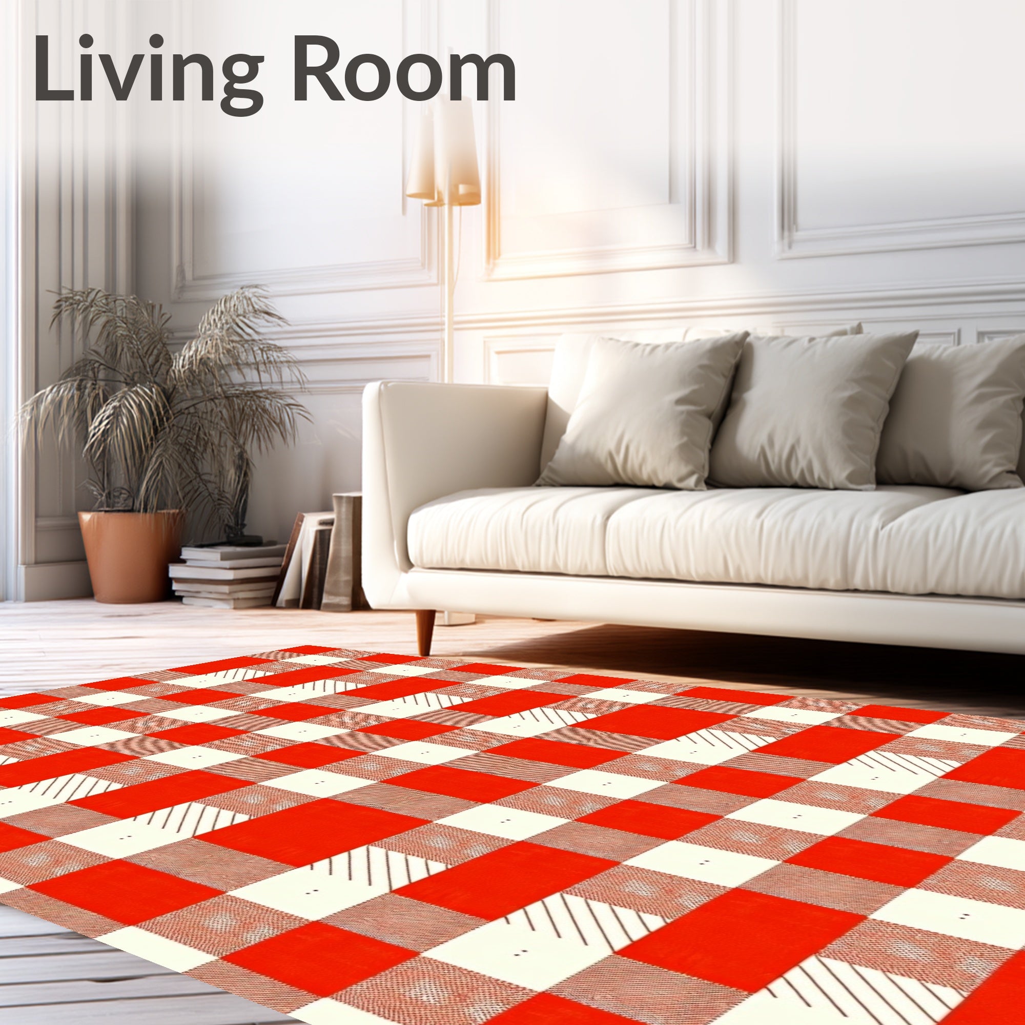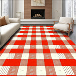 Ultra Soft Area Rug, Non Slip, Stain Resistant, Washable Area Rugs for Living Room, Bedroom, Harvest Plaid Patchwork Check Motif with Interlocking Autumnal Stripes(Red) Overview: