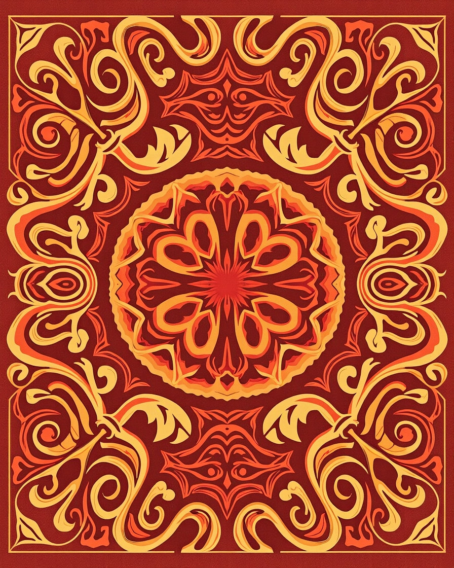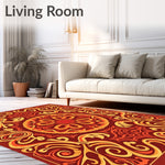 Ultra Soft Area Rug, Non Slip, Stain Resistant, Washable Area Rugs for Living Room, Bedroom, Harvest Scrollwork Featuring Abstract Floral Vines(Red) Overview: