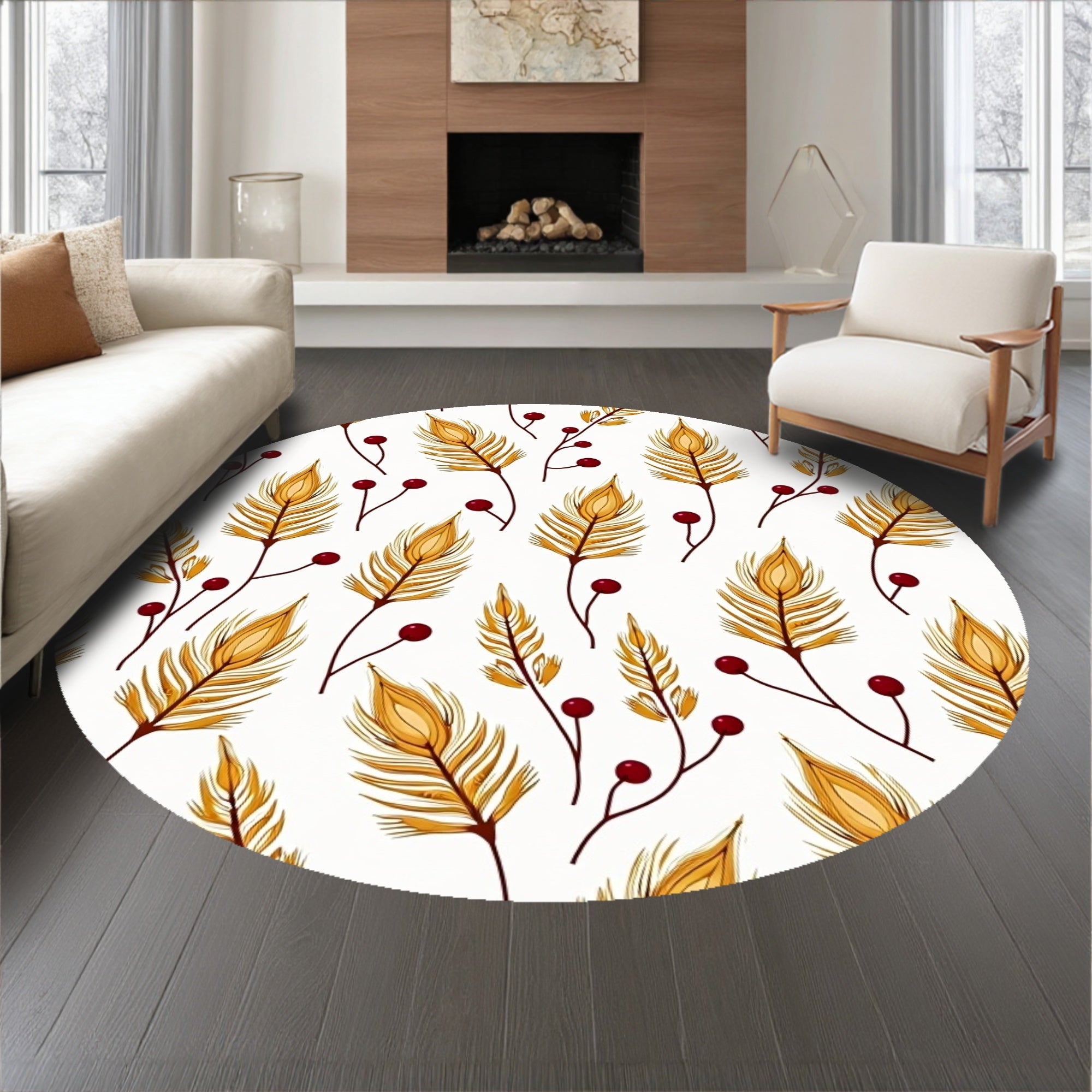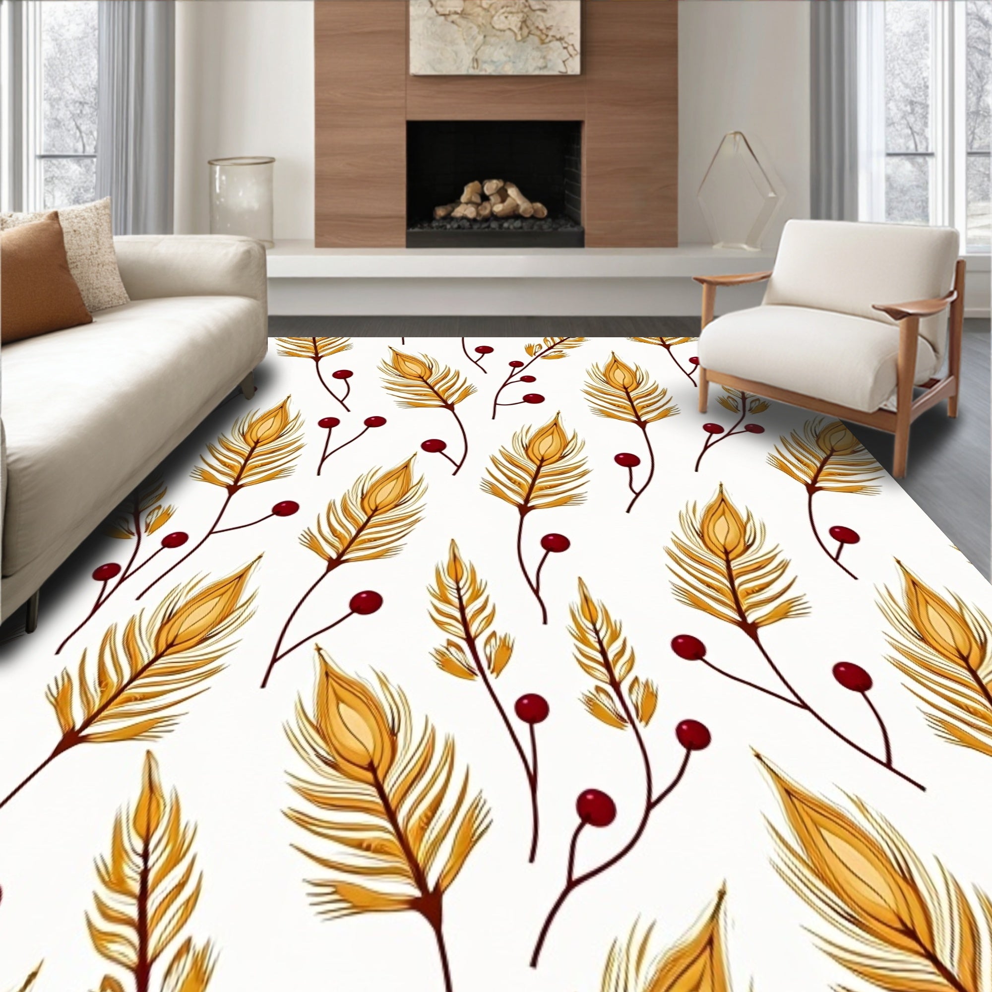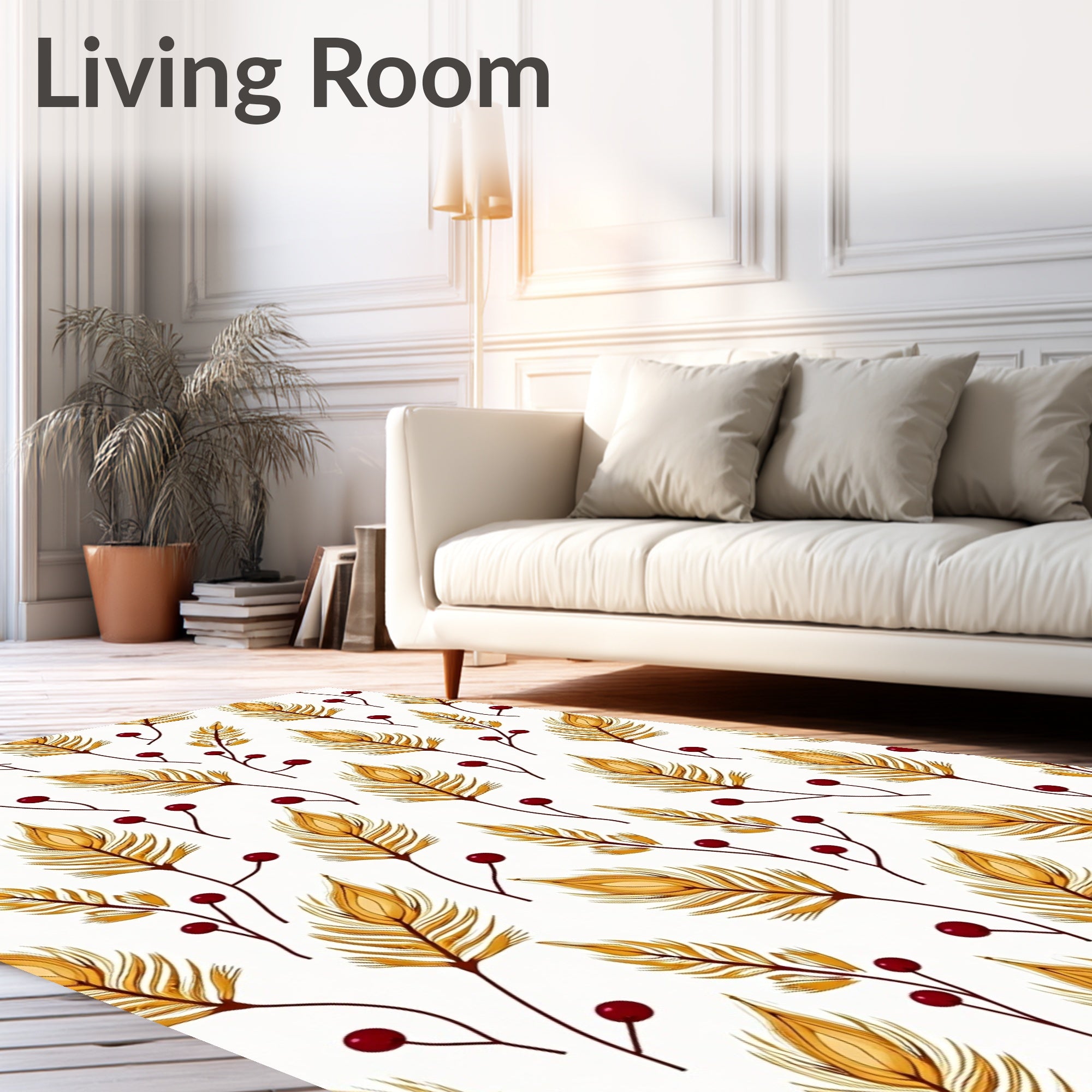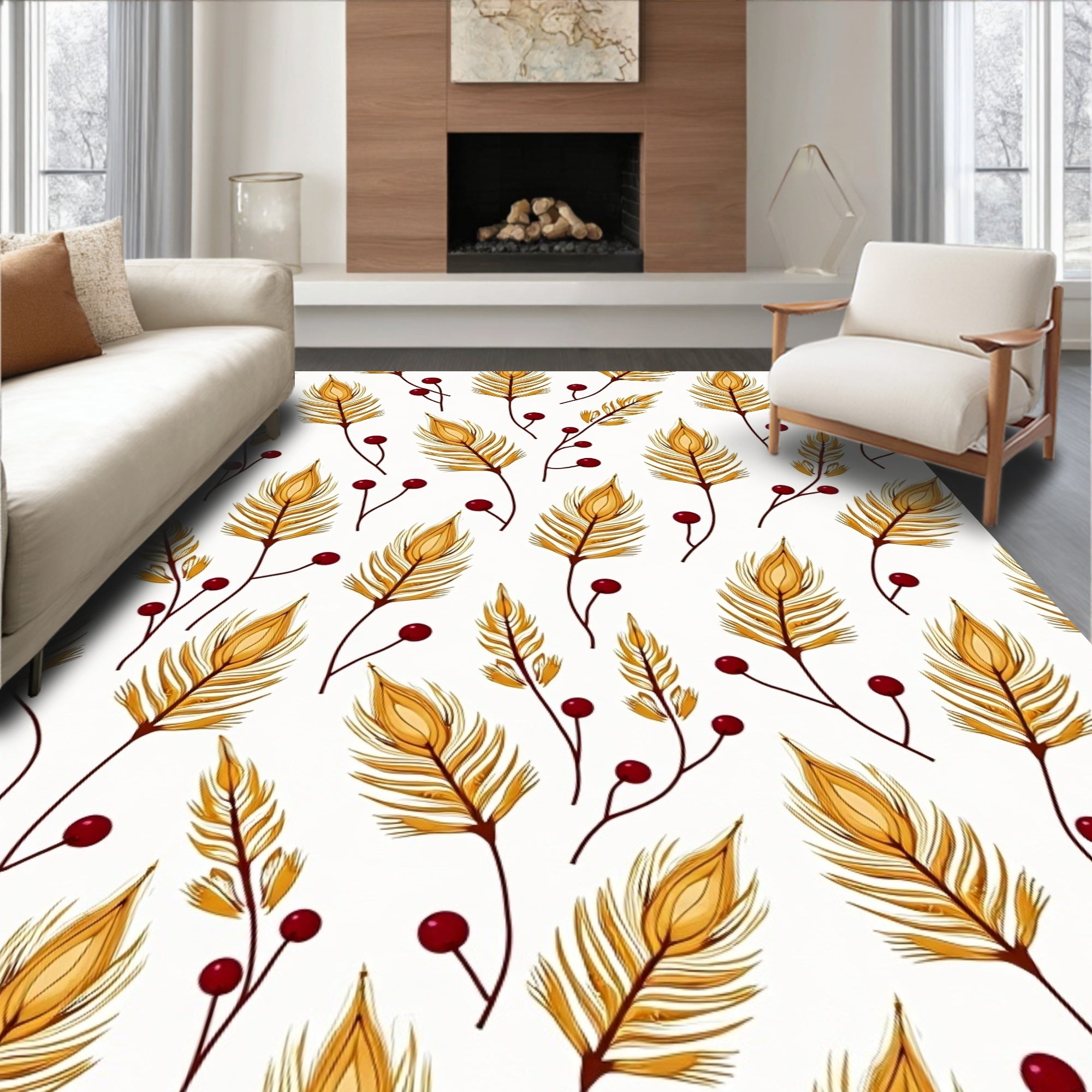 Ultra Soft Area Rug, Non Slip, Stain Resistant, Washable Area Rugs for Living Room, Bedroom, Harvest Season Botanical Print Hallway Slip Resistant Base(Gold) Overview: