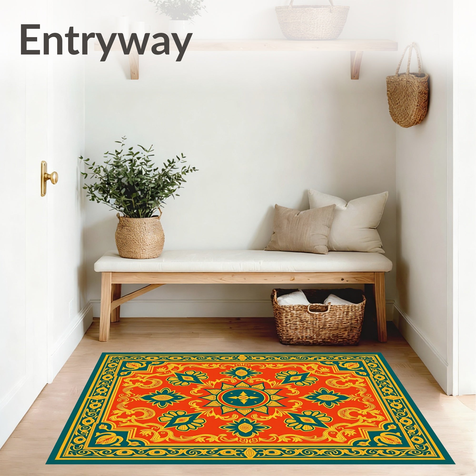 Harvest Sunset Medallion Decorative Floor Covering(Red)