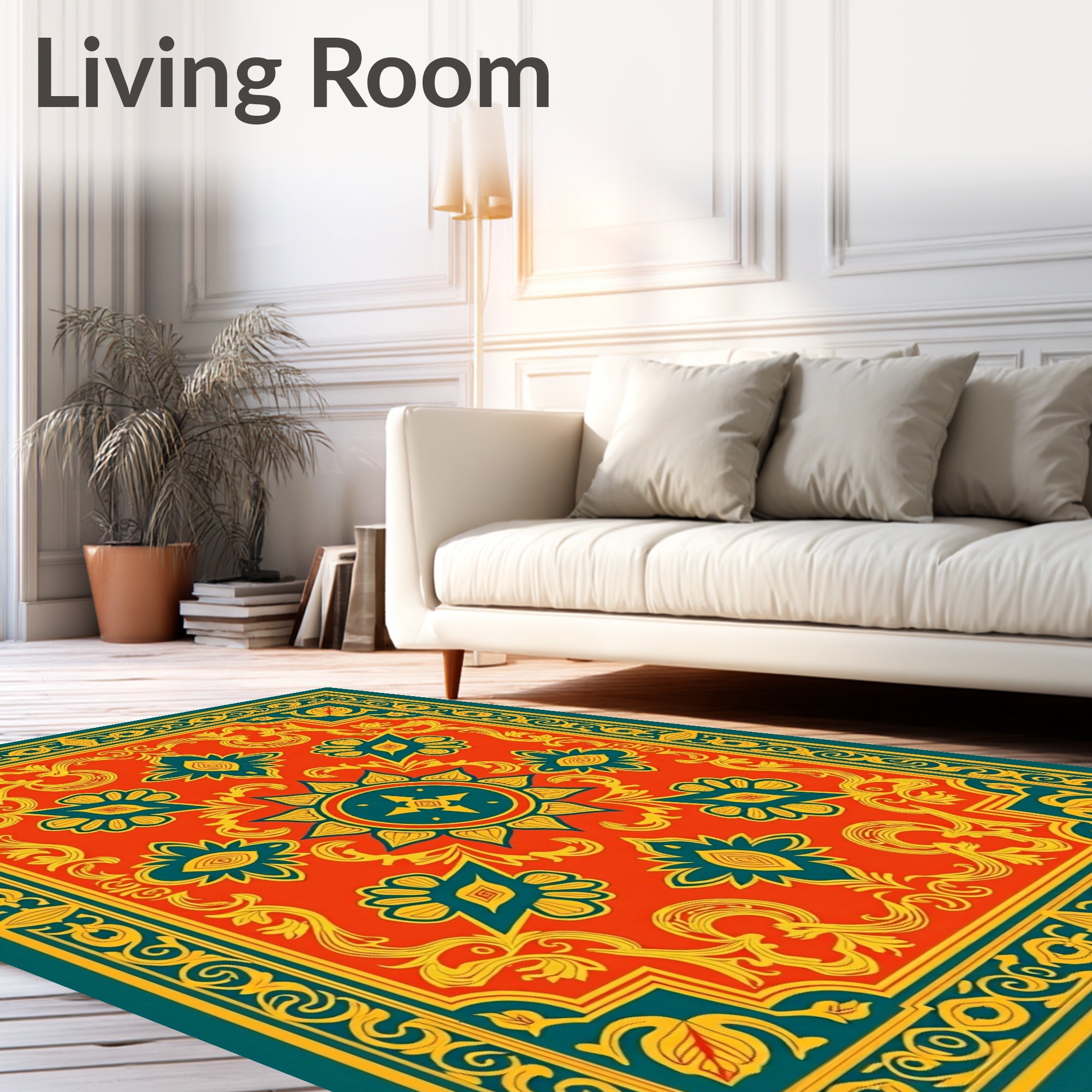 Ultra Soft Area Rug, Non Slip, Stain Resistant, Washable Area Rugs for Living Room, Bedroom, Harvest Sunset Medallion Decorative Floor Covering(Red) Overview: