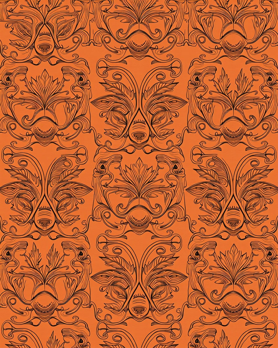 Harvest Vine Scrollwork with Stylized Maple Motifs and Ornate Baroque Flourish(Orange)