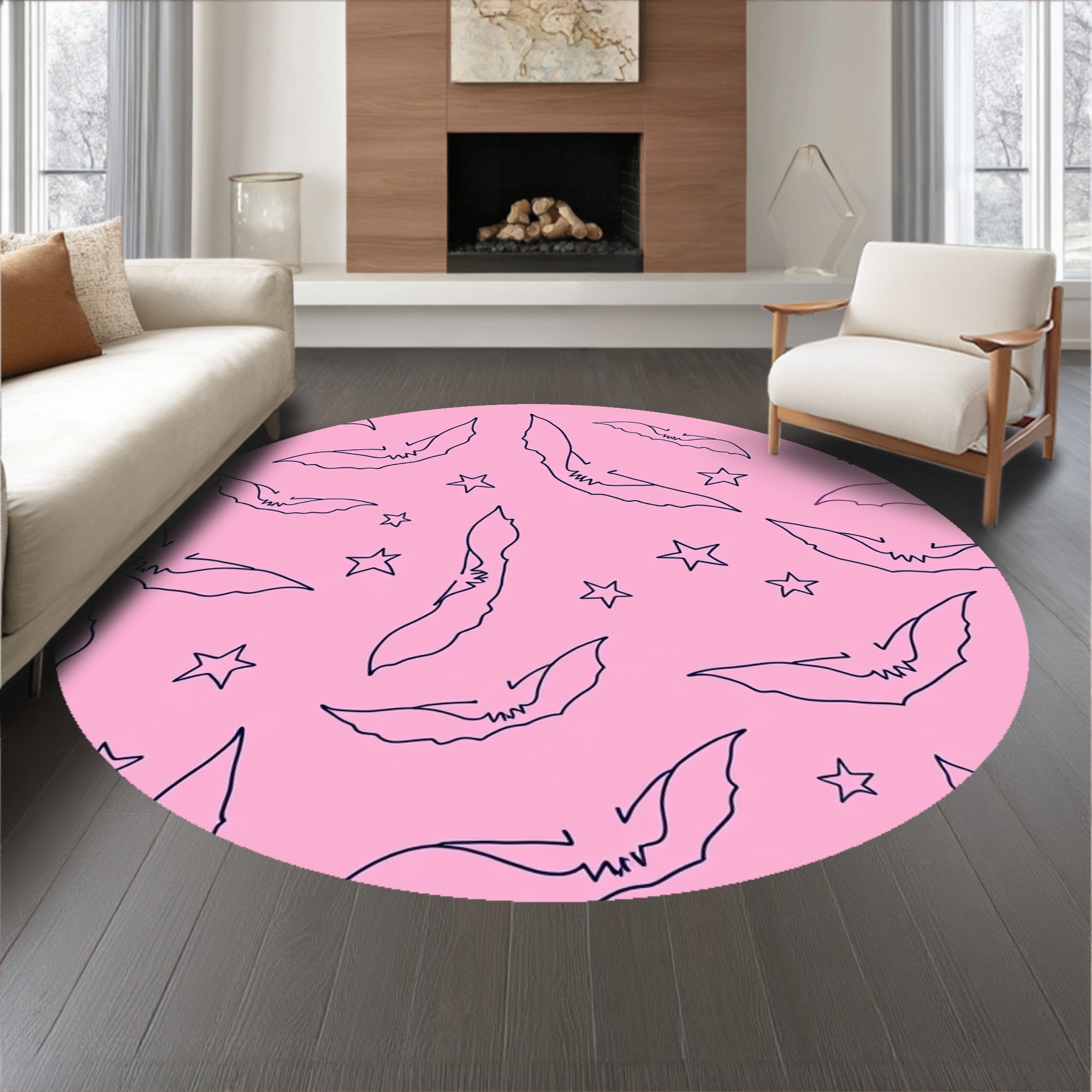 Ultra Soft Area Rug, Non Slip, Stain Resistant, Washable Area Rugs for Living Room, Bedroom, Haunting Nocturnal Creature Celestial Display Festive Accent(Pink) Overview: