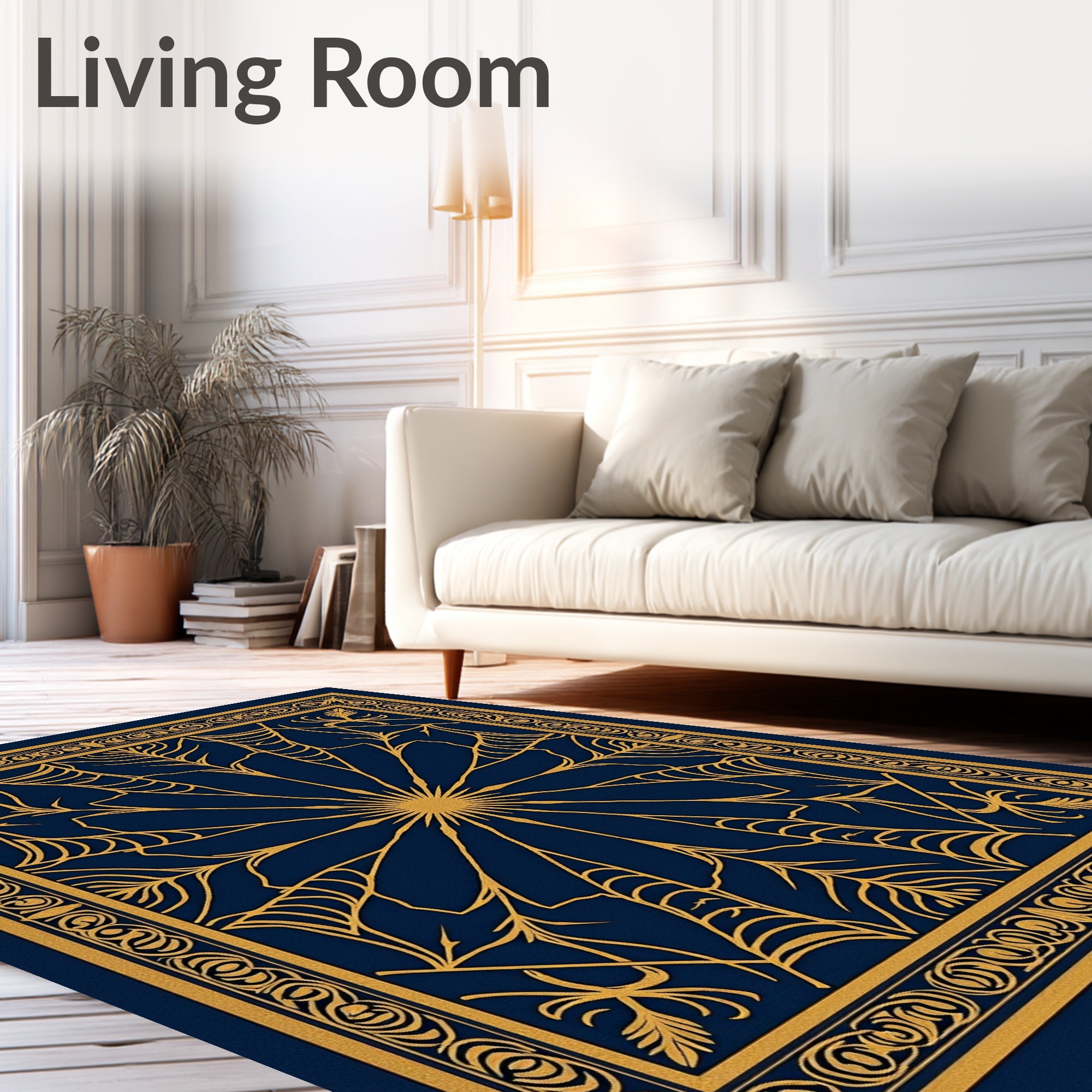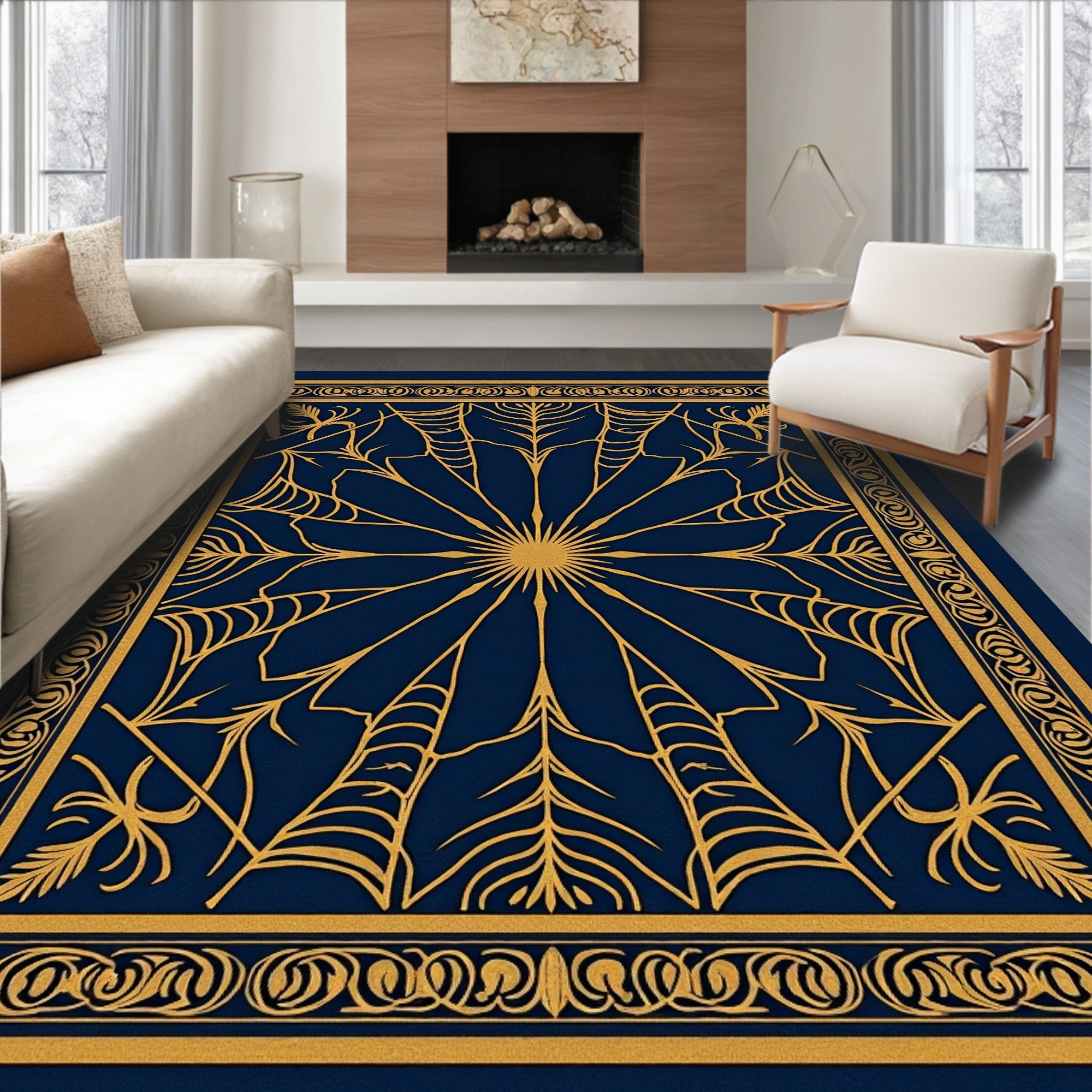 Ultra Soft Area Rug, Non Slip, Stain Resistant, Washable Area Rugs for Living Room, Bedroom, Haunting Web with Complex Spider Network Design(Gold) Overview: