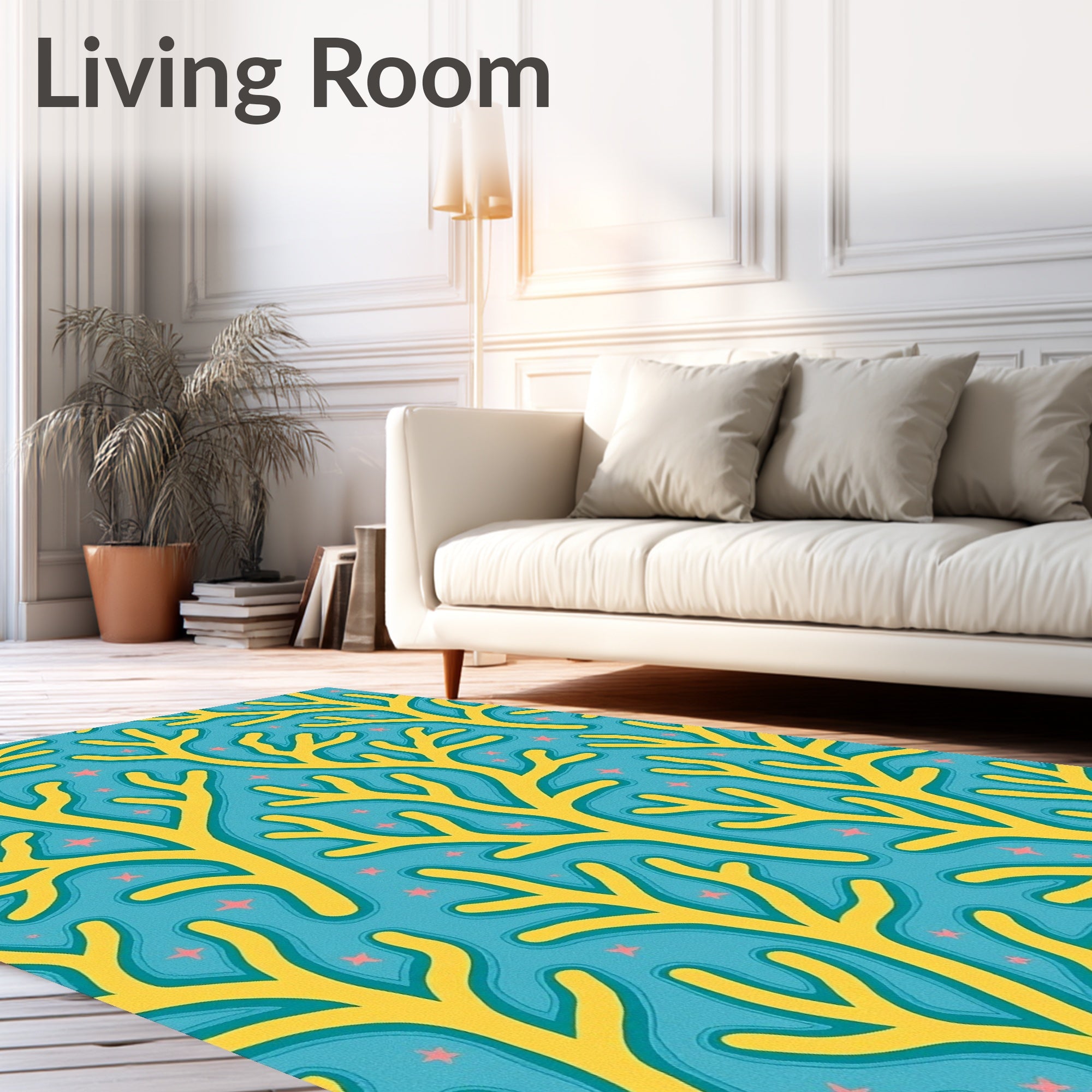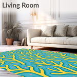 Ultra Soft Area Rug, Non Slip, Stain Resistant, Washable Area Rugs for Living Room, Bedroom, Hawaiian Reef Dreamscape with Starlit Coral(Yellow) Overview: