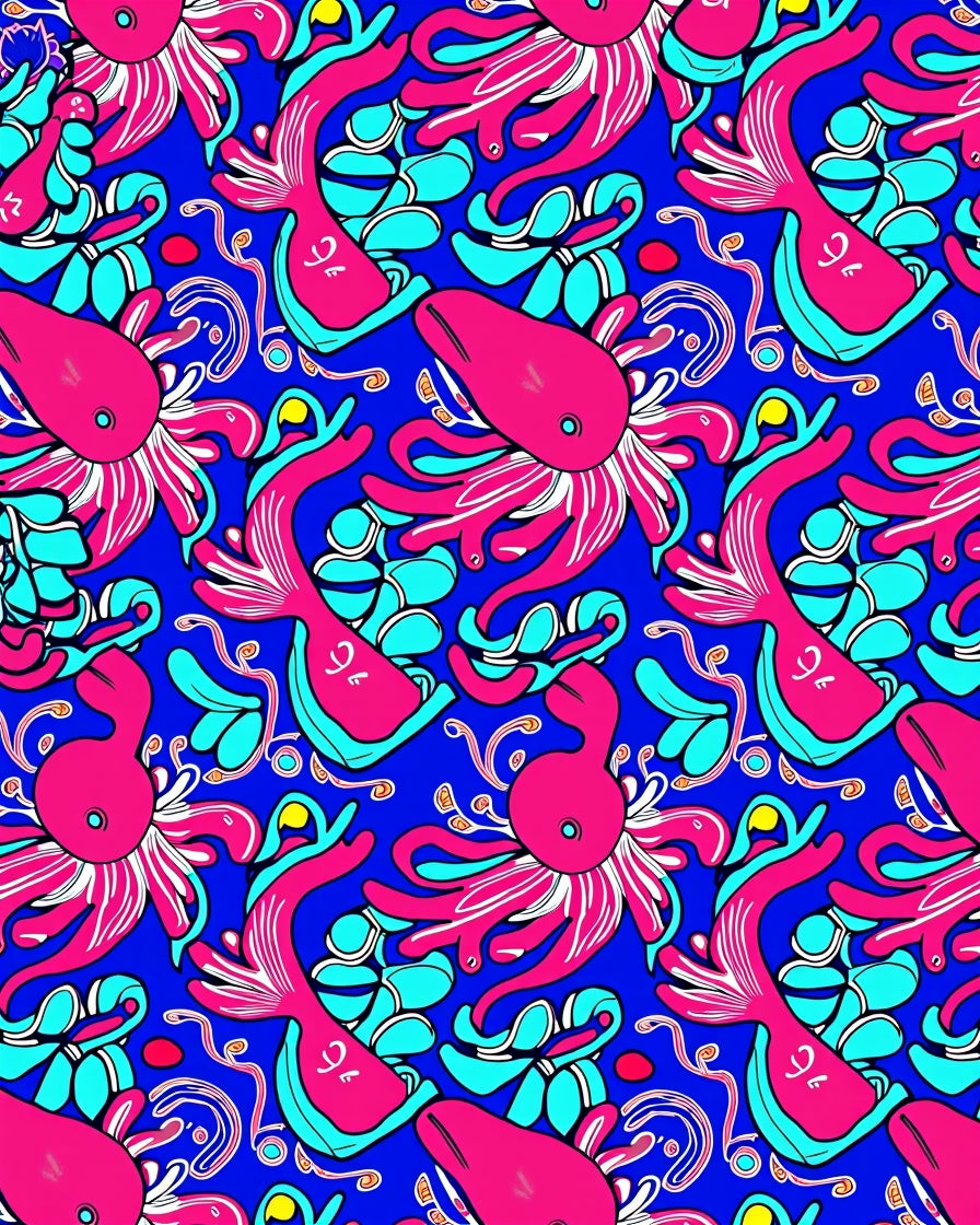 Hawaiian Reef Life Mythical Creatures Mosaic Design(Pink)