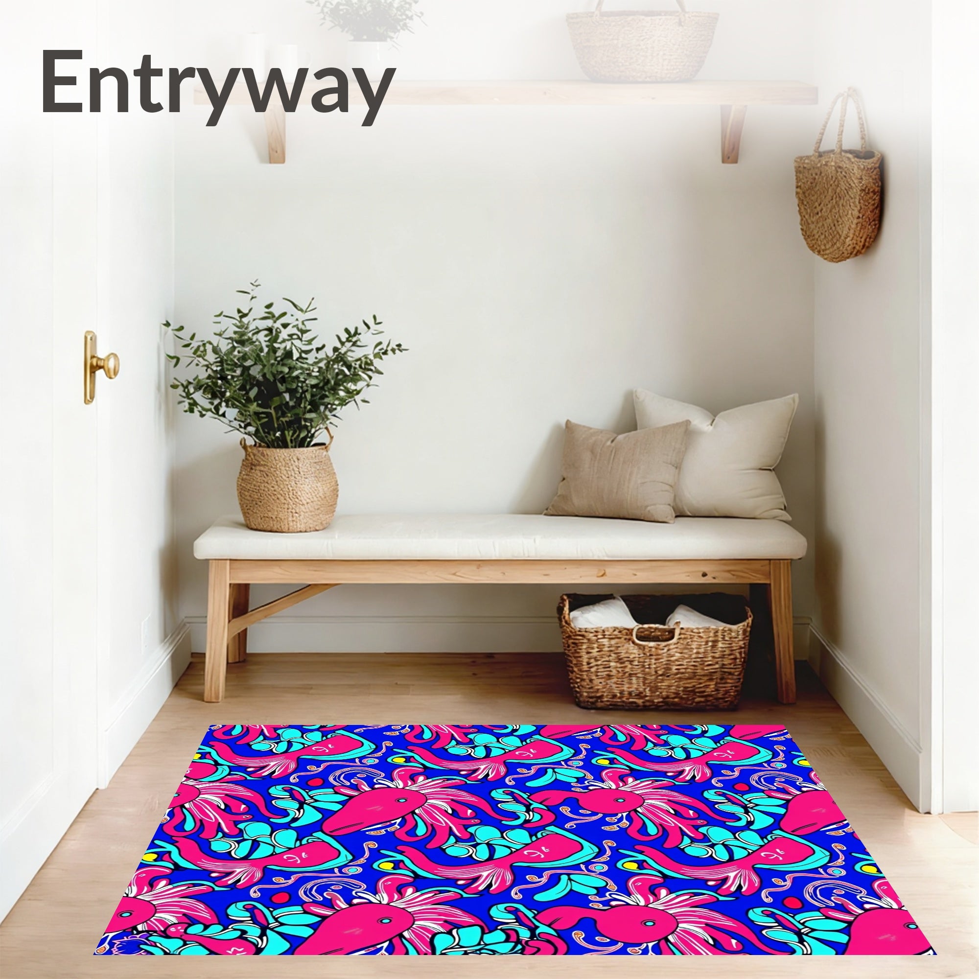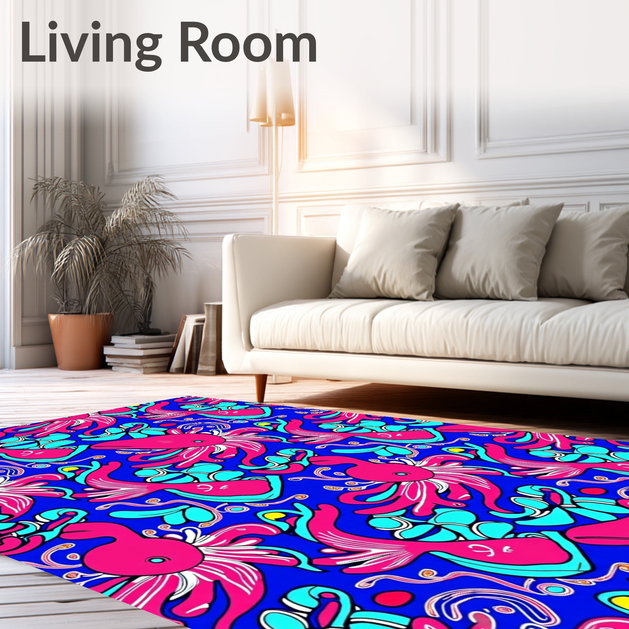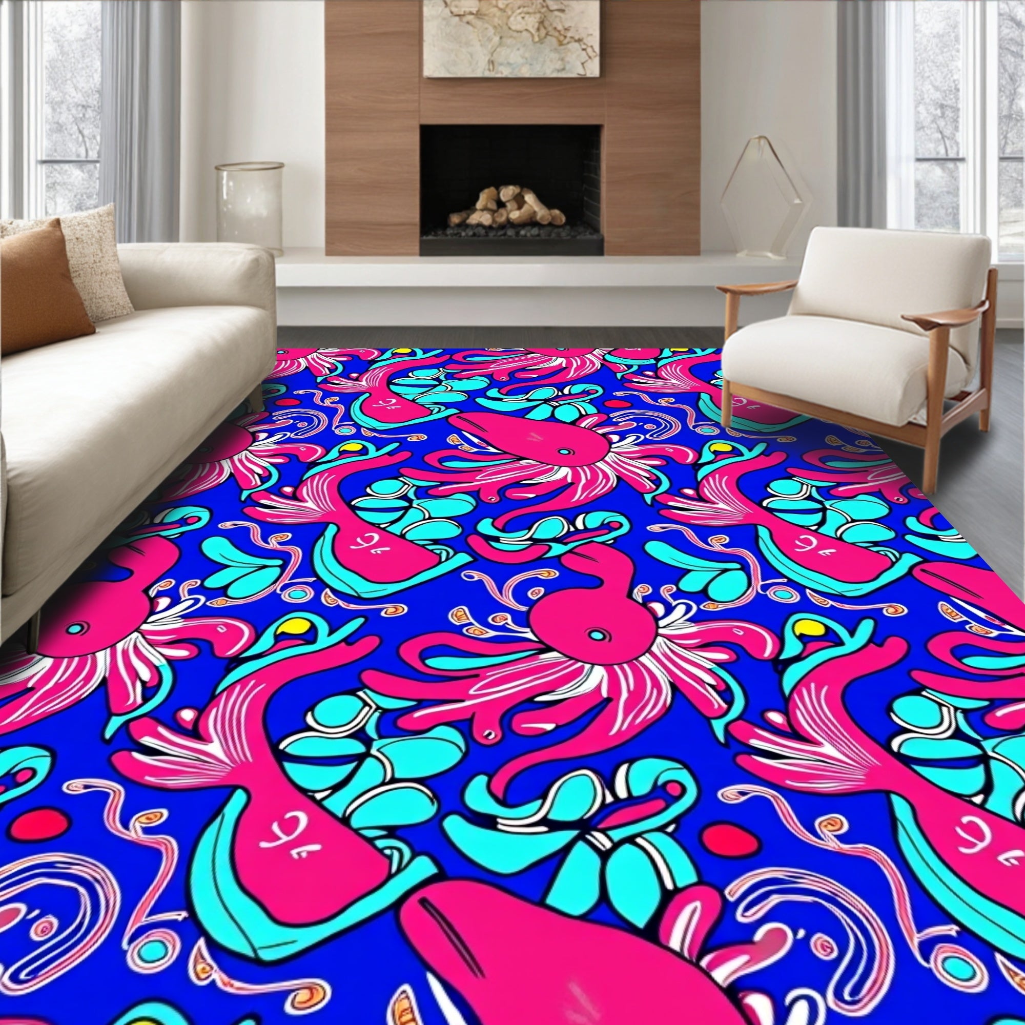 Ultra Soft Area Rug, Non Slip, Stain Resistant, Washable Area Rugs for Living Room, Bedroom, Hawaiian Reef Life Mythical Creatures Mosaic Design(Pink) Overview: