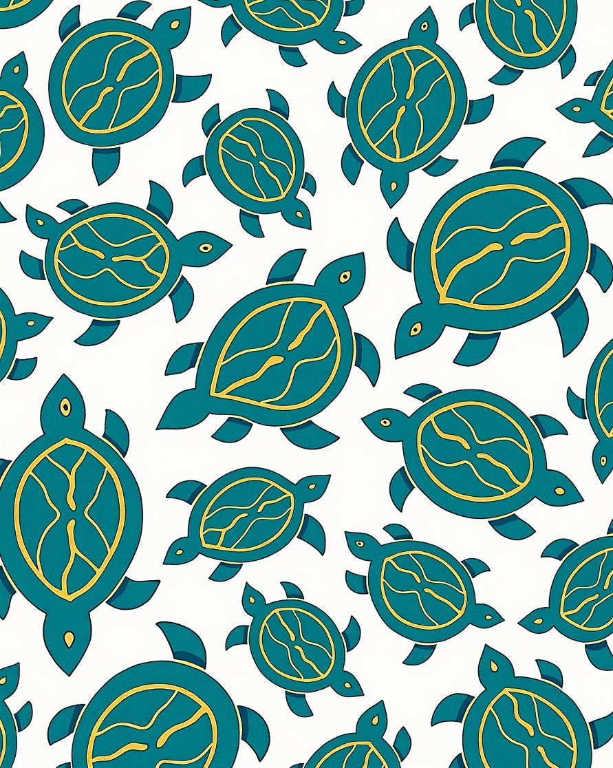 Hawaiian Sea Mosaic with Surreal Ocean Waves Design(Blue)