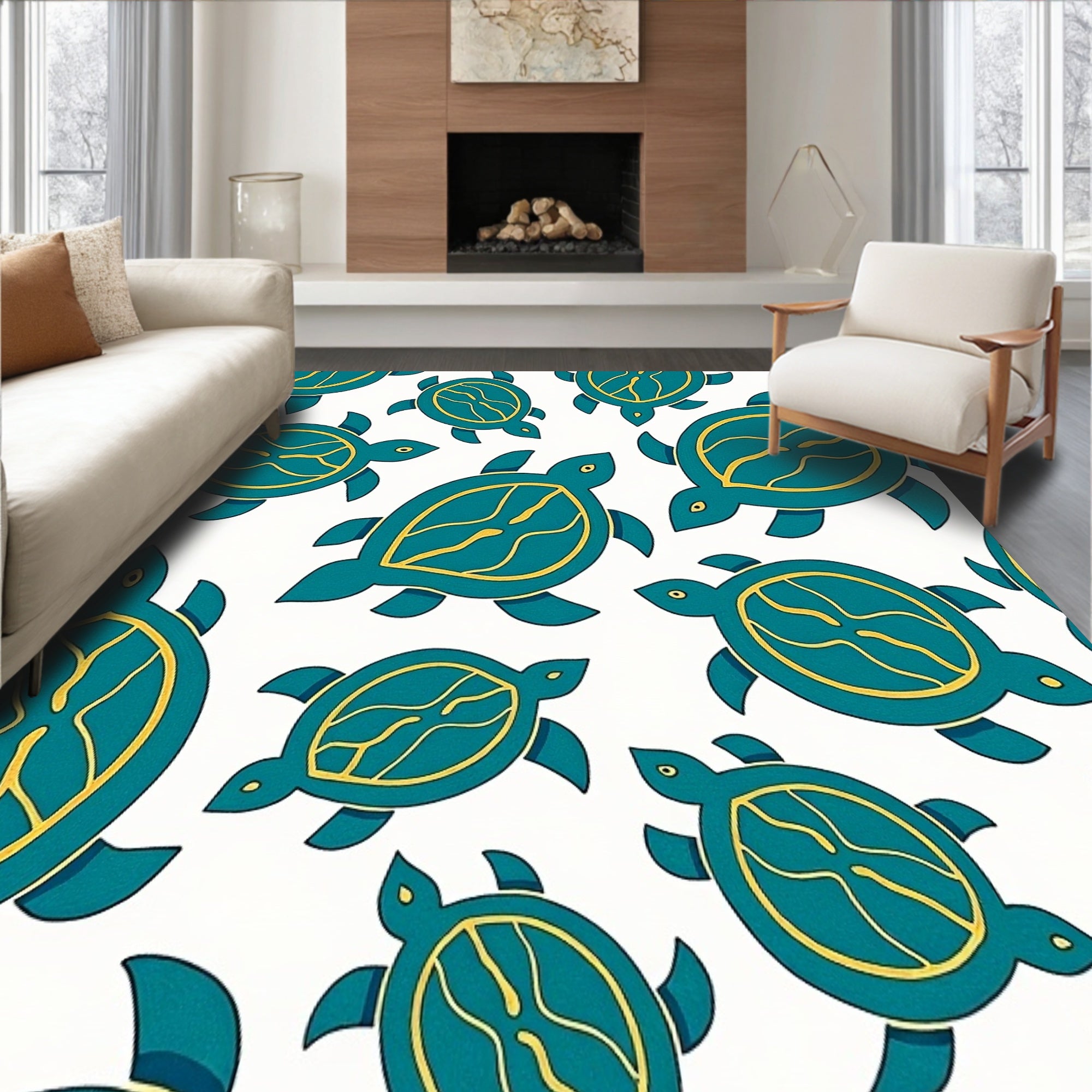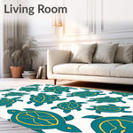 Ultra Soft Area Rug, Non Slip, Stain Resistant, Washable Area Rugs for Living Room, Bedroom, Hawaiian Sea Mosaic with Surreal Ocean Waves Design(Blue) Overview: