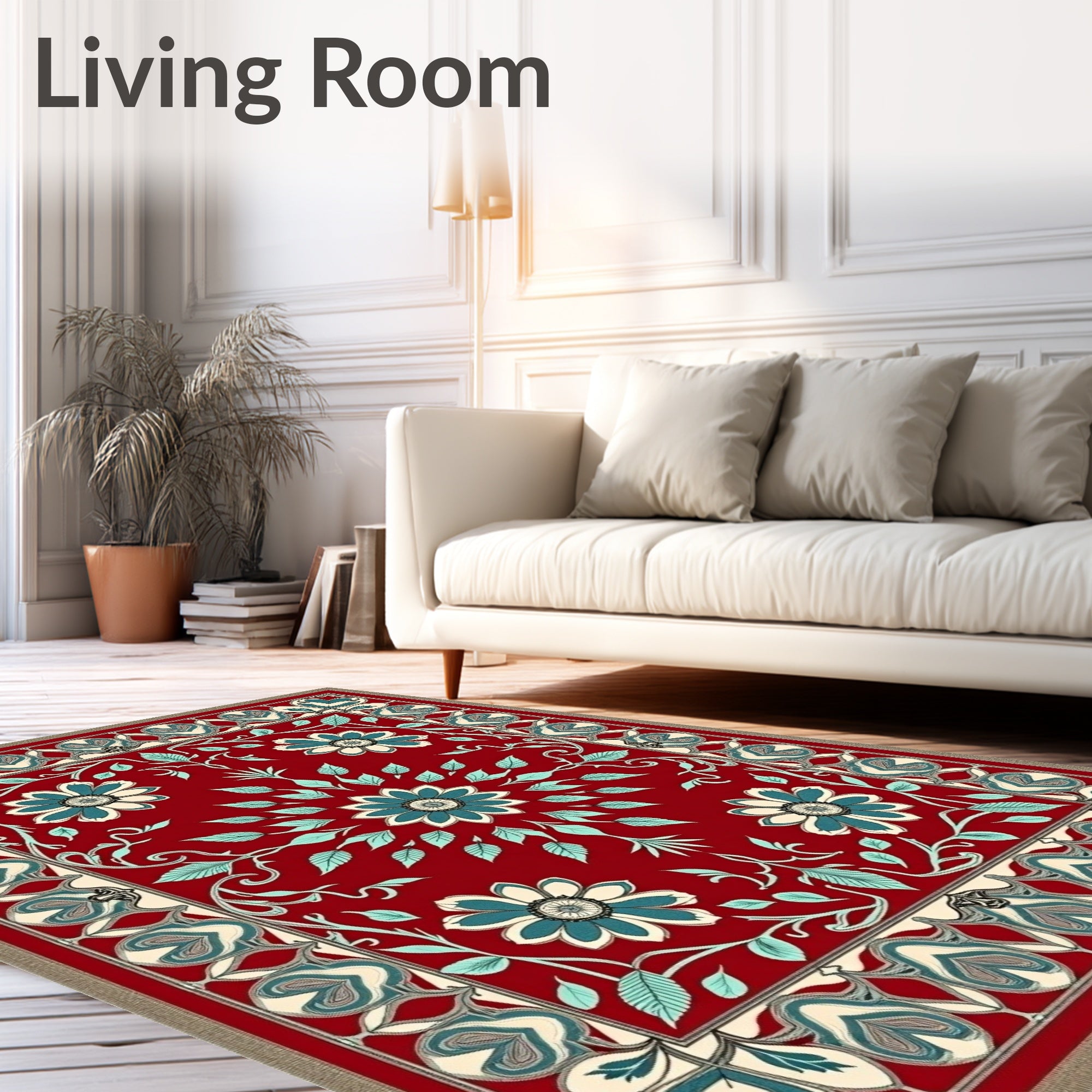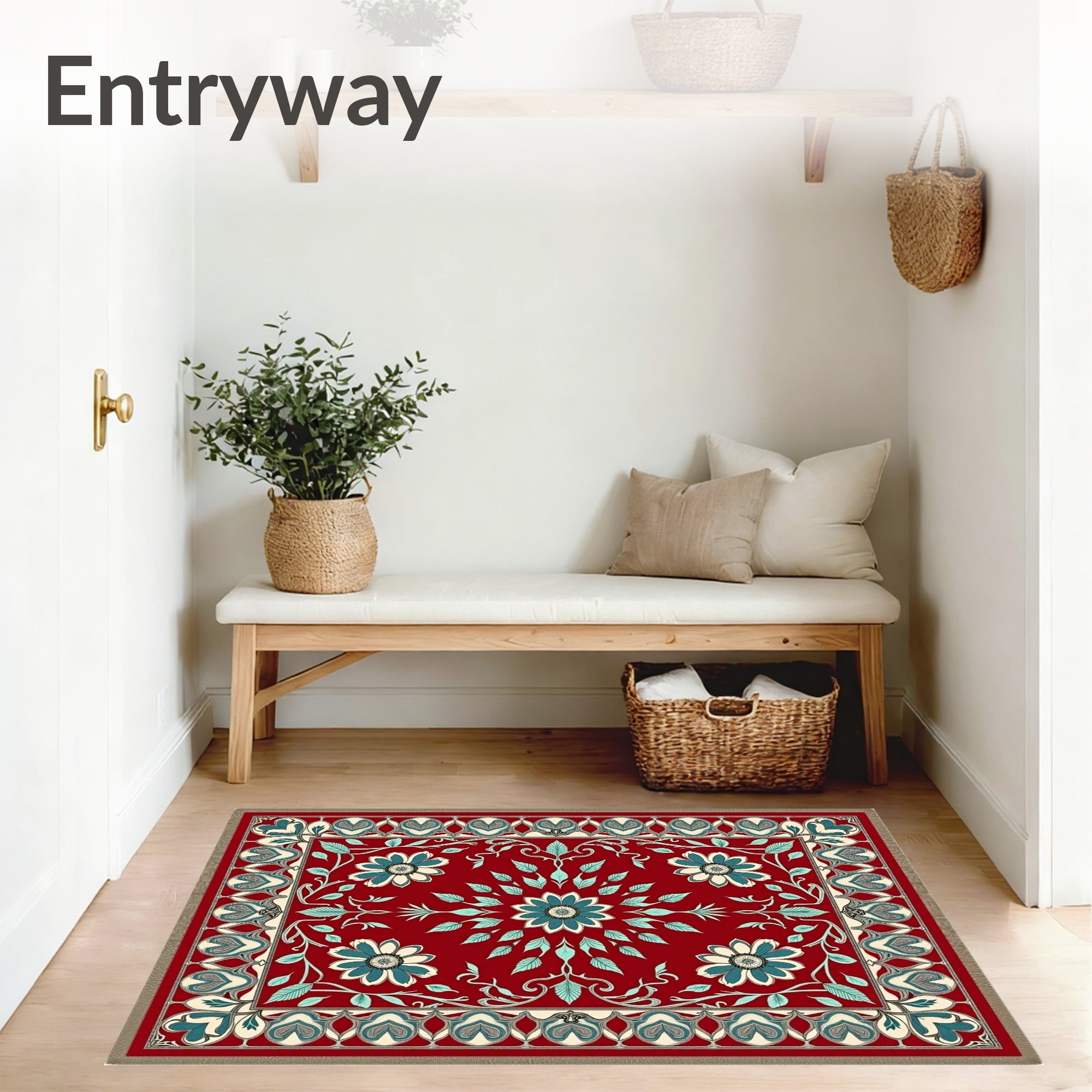 Ultra Soft Area Rug, Non Slip, Stain Resistant, Washable Area Rugs for Living Room, Bedroom, Heirloom Floral Symphony Artisan Pathway Collection(Red) Overview: