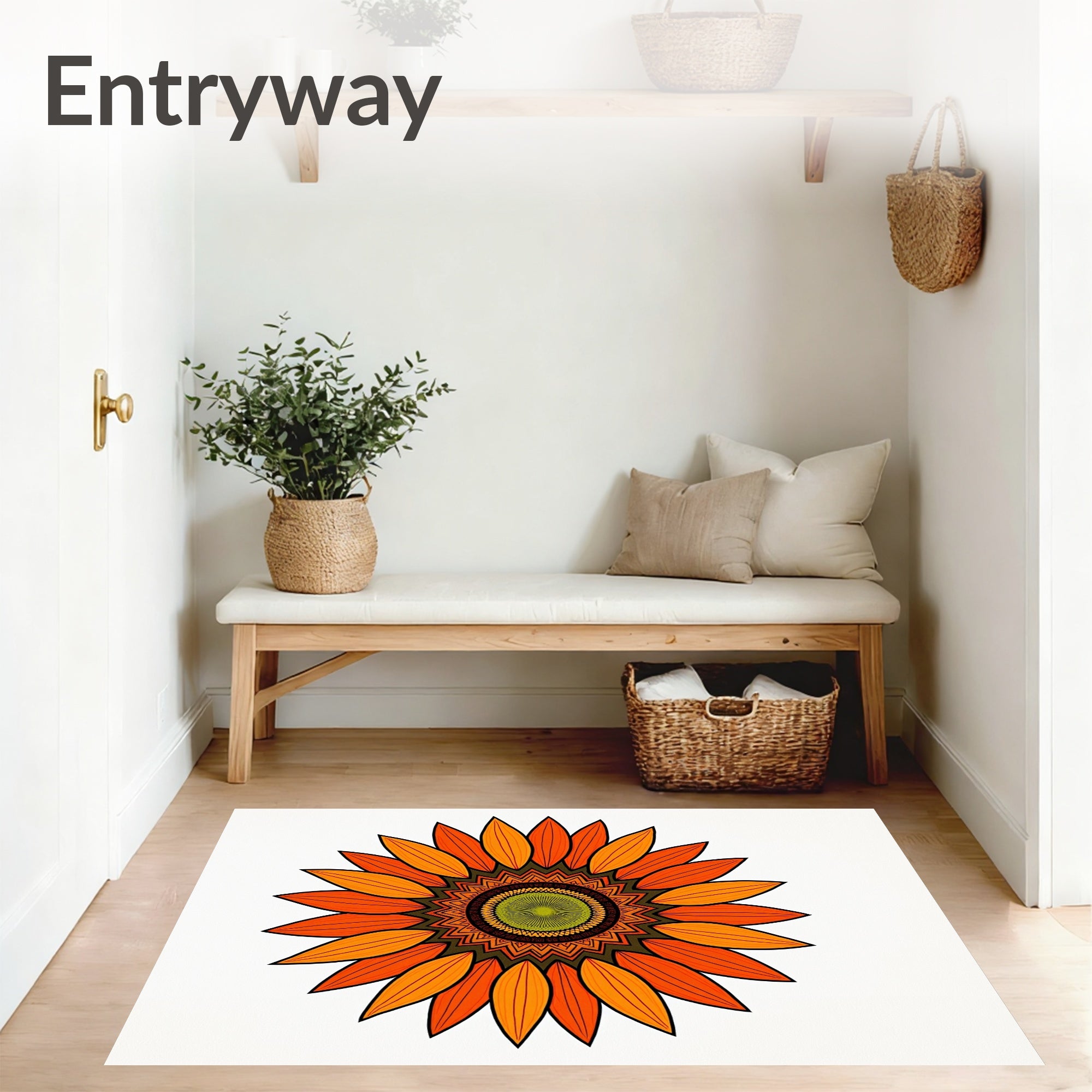 Ultra Soft Area Rug, Non Slip, Stain Resistant, Washable Area Rugs for Living Room, Bedroom, Helianthus Inspired Decorative Surface(Orange) Overview: