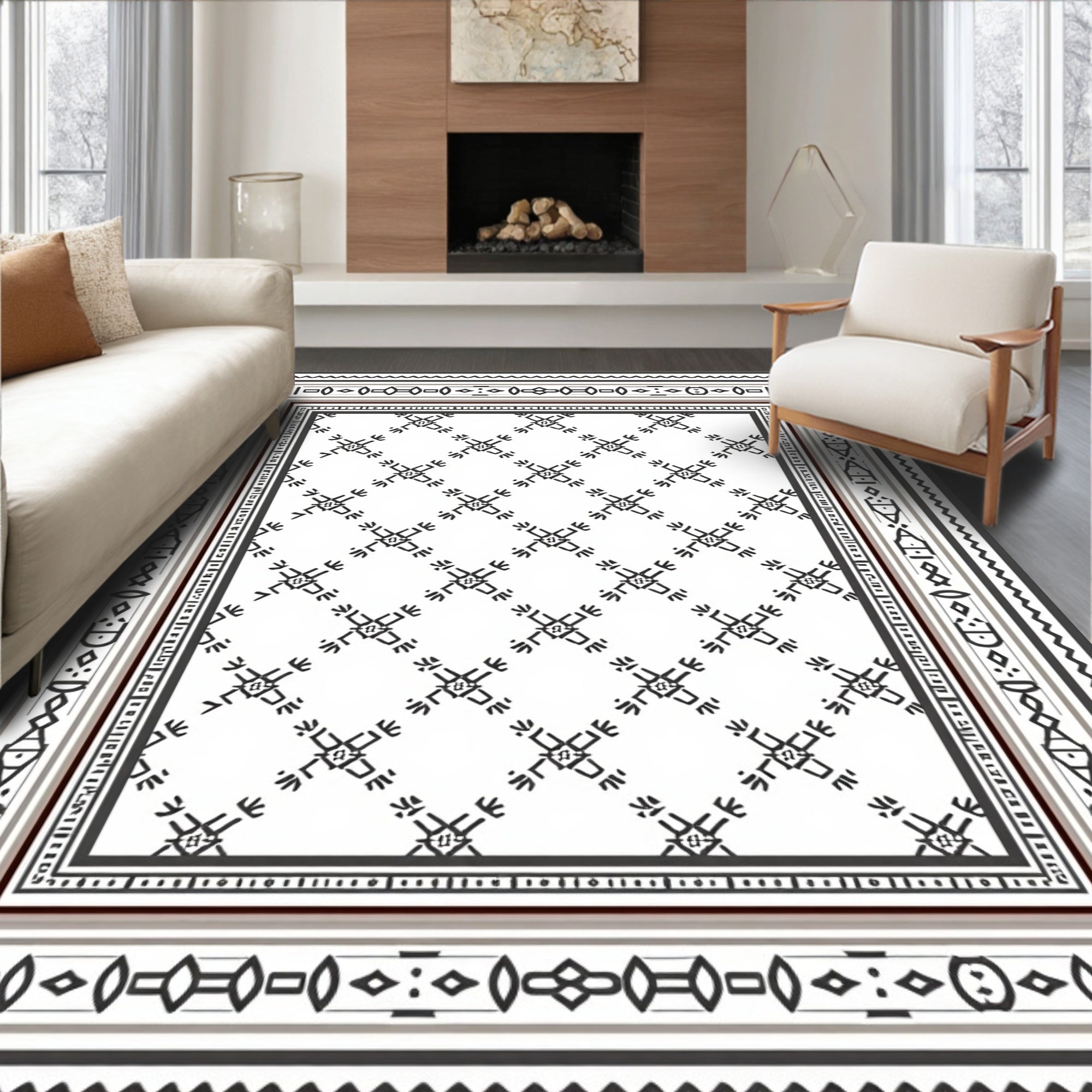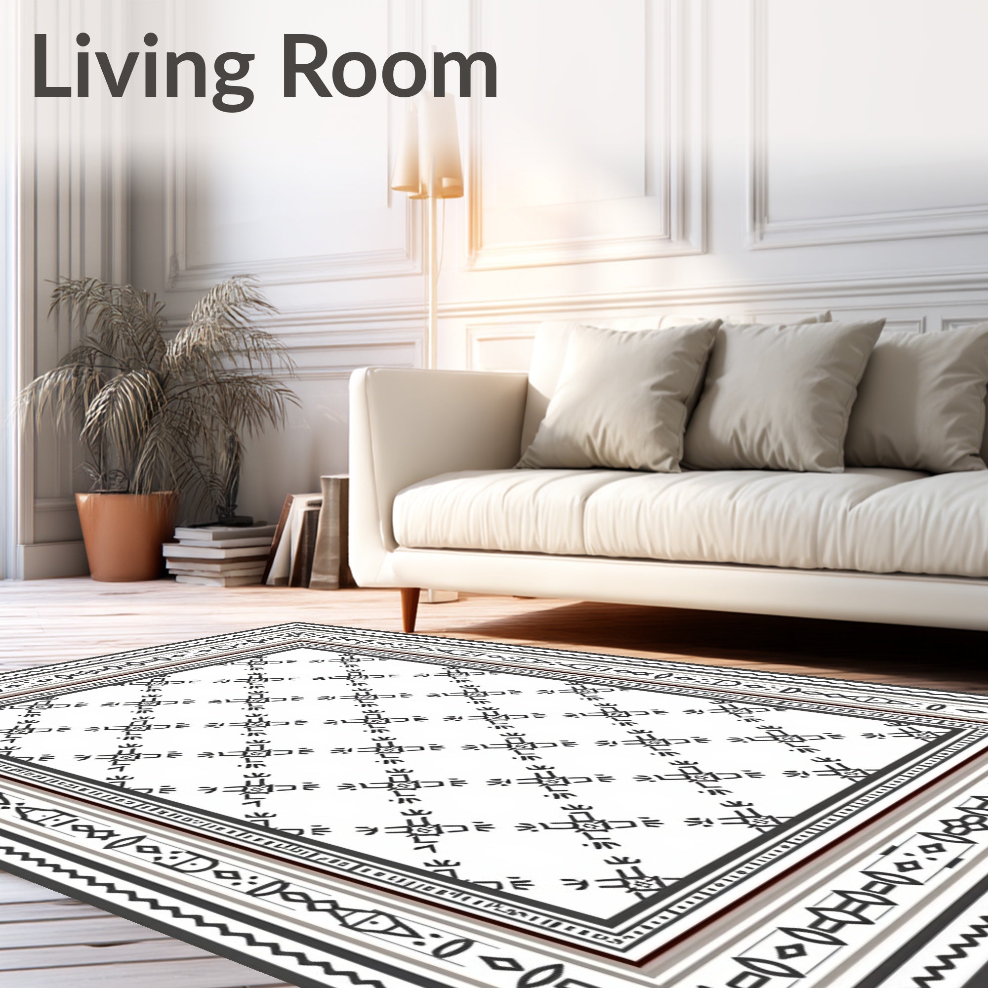 Ultra Soft Area Rug, Non Slip, Stain Resistant, Washable Area Rugs for Living Room, Bedroom, Heritage Ancient Symbolic(White) Overview: