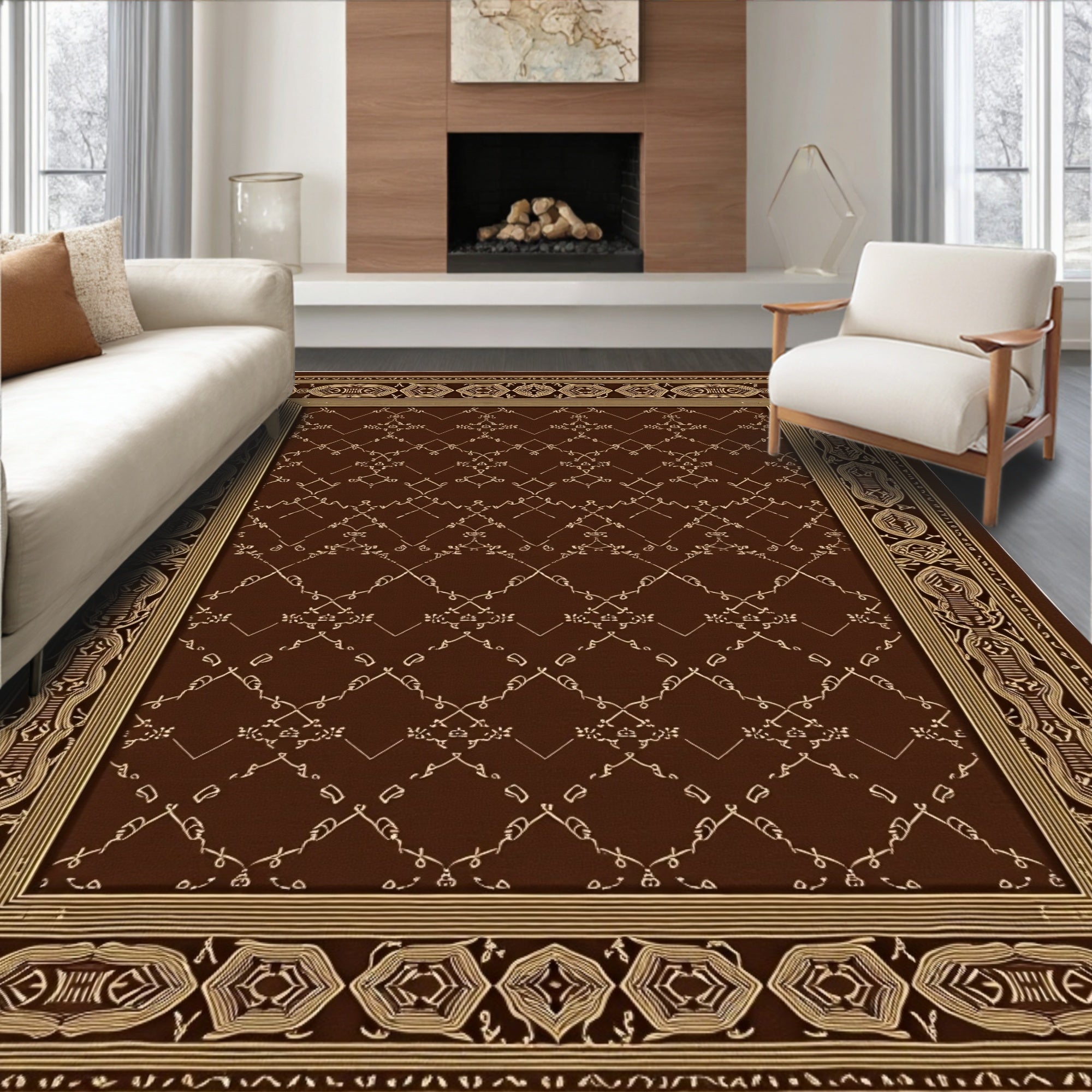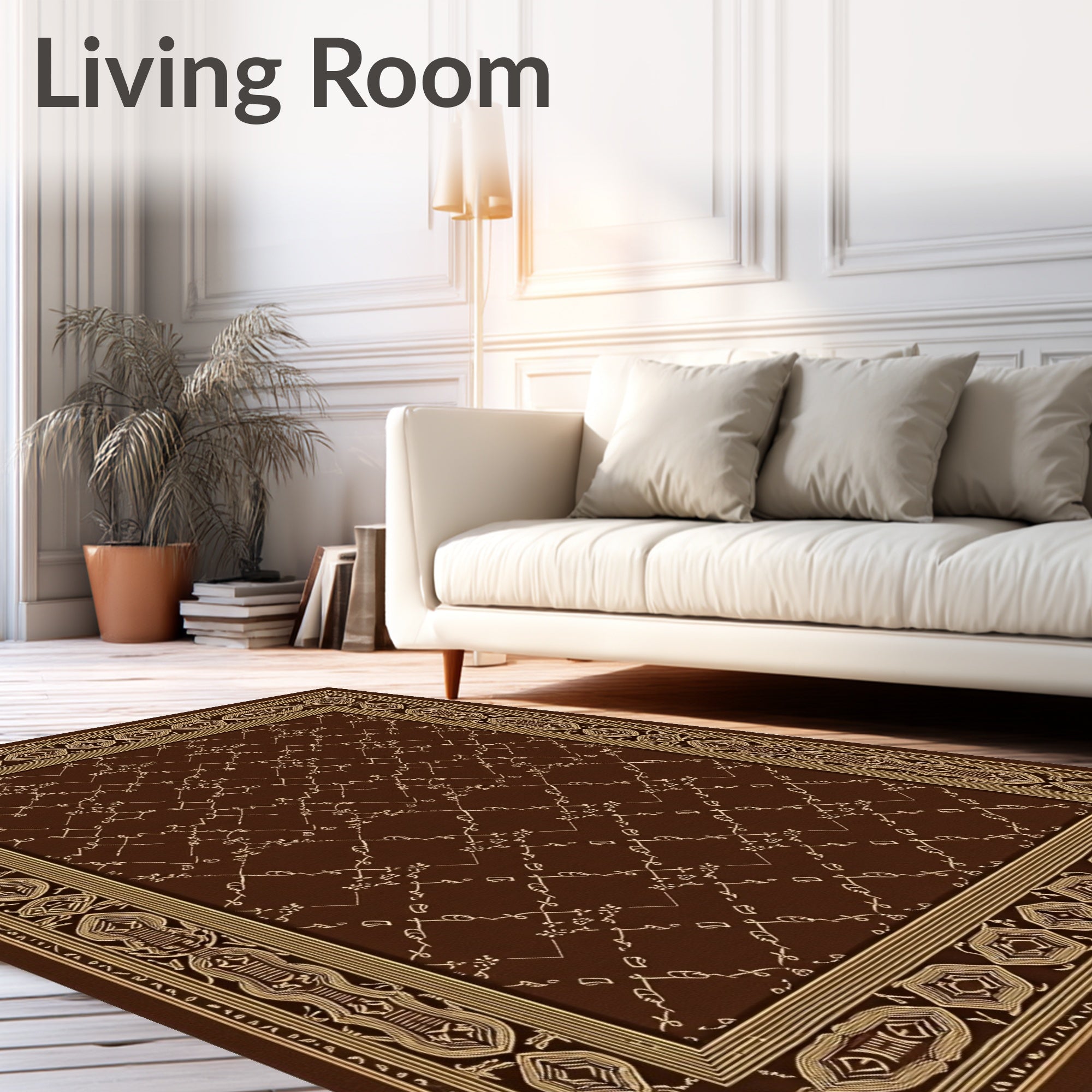 Flatwoven High Traffic Area Rug, Heritage Artisan Lattice Brocade Jacquard Tapestry, Non Slip, Stain Resistant, Washable Area Rugs for Living Room, Bedroom (Brown) Overview: