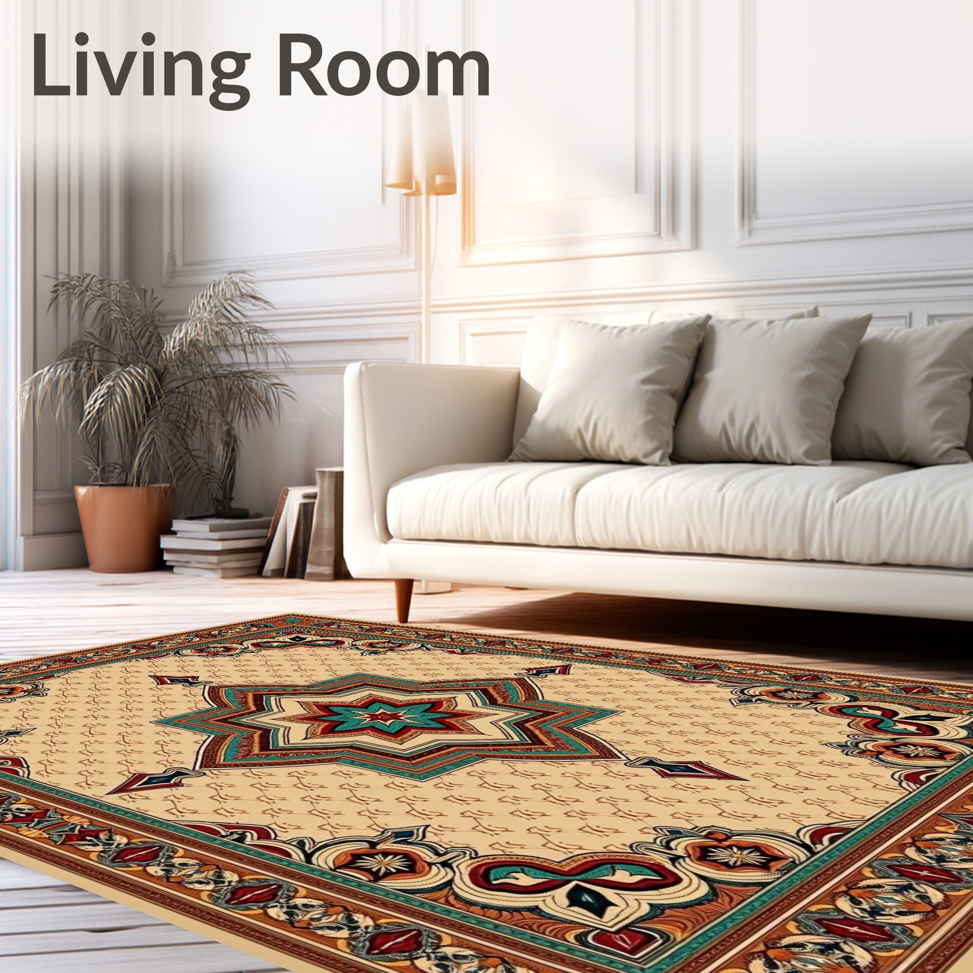 Ultra Soft Area Rug, Non Slip, Stain Resistant, Washable Area Rugs for Living Room, Bedroom, Heritage Artisan Mosaic Treasure(Beige) Overview: