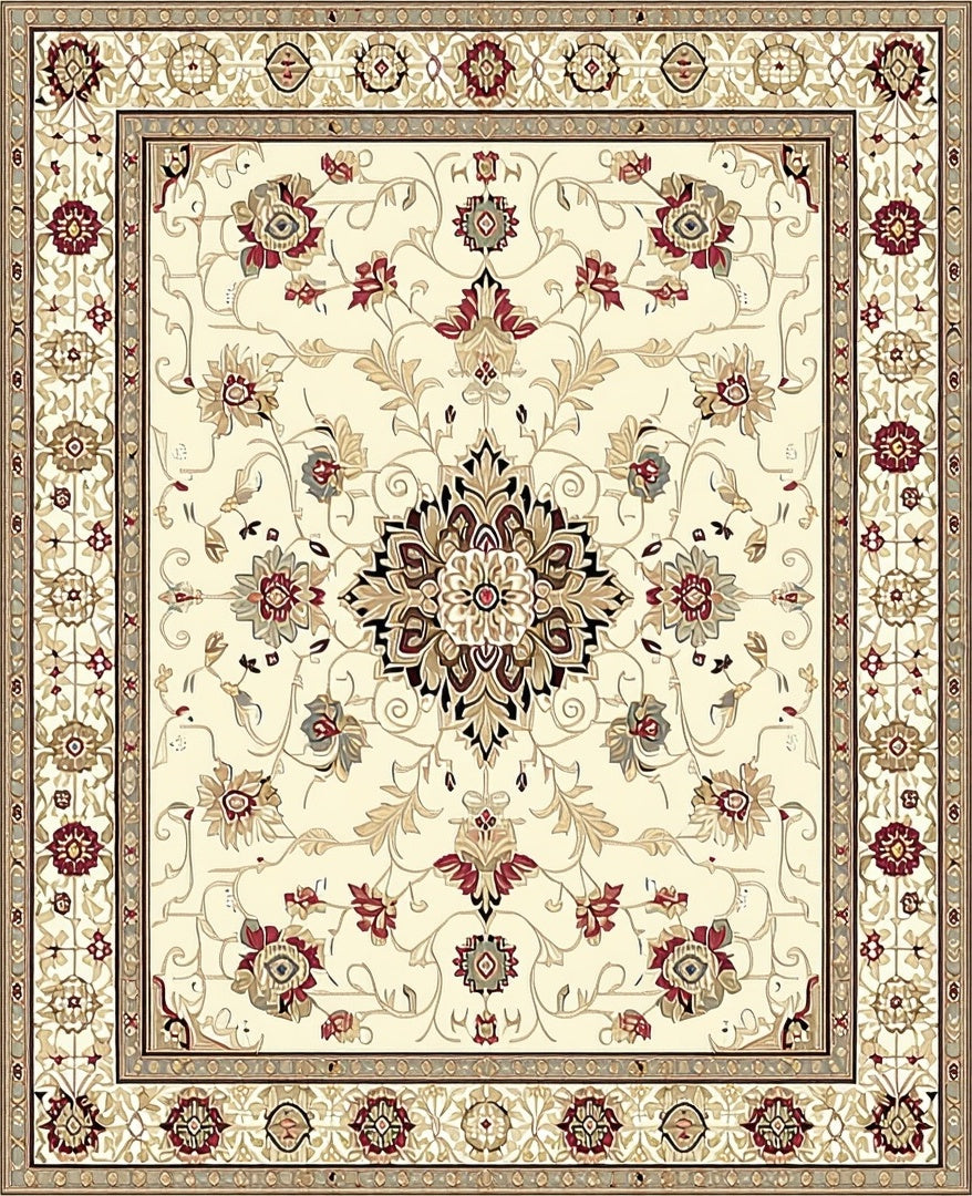 Flatwoven High Traffic Area Rug, Heritage Beige Tapestry Mousepad Miniature Elegant Desk Design, Non Slip, Stain Resistant, Washable Area Rugs for Living Room, Bedroom (Beige) Overview: