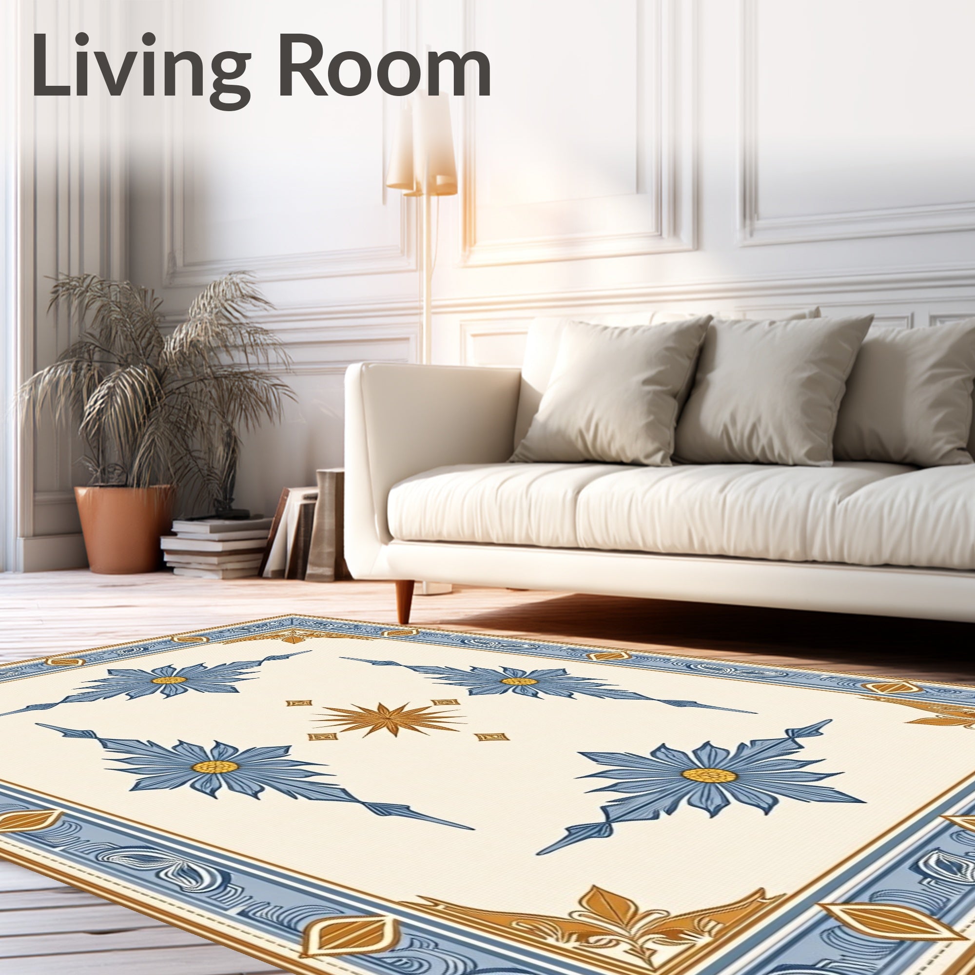 Ultra Soft Area Rug, Non Slip, Stain Resistant, Washable Area Rugs for Living Room, Bedroom, Heritage Cascade Damask Jewel Palatial(Blue) Overview: