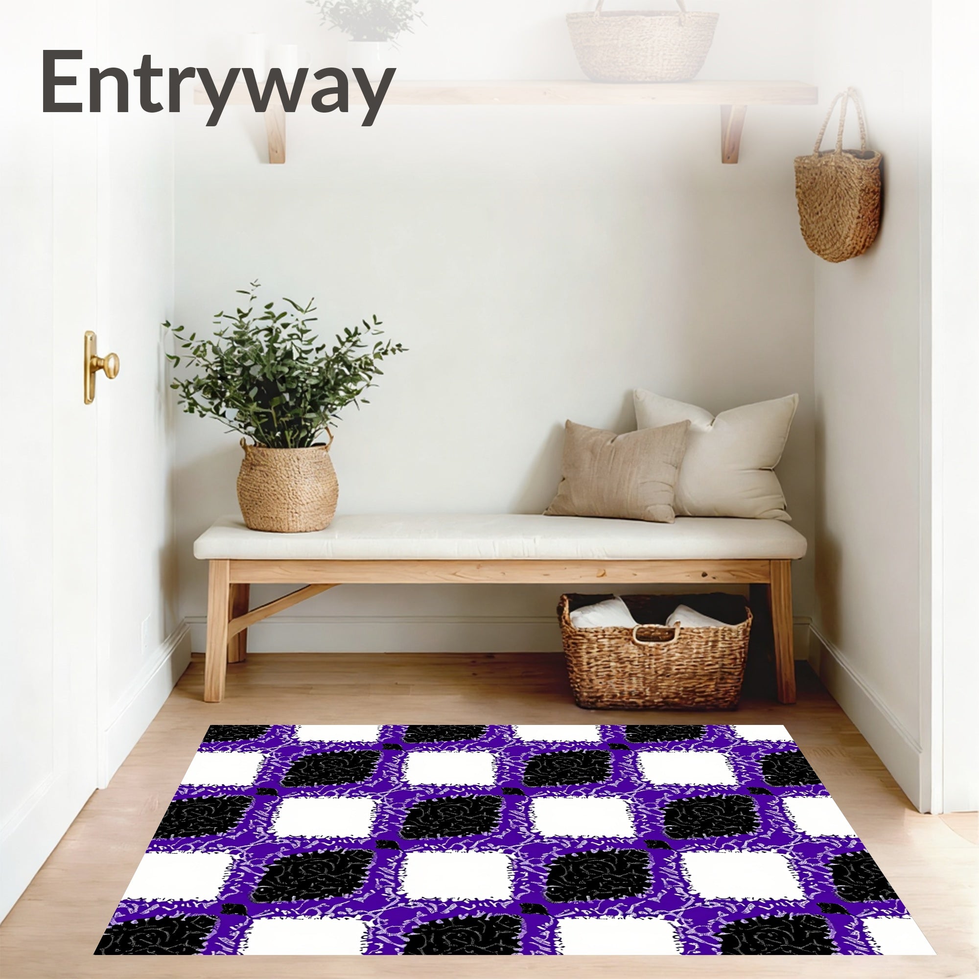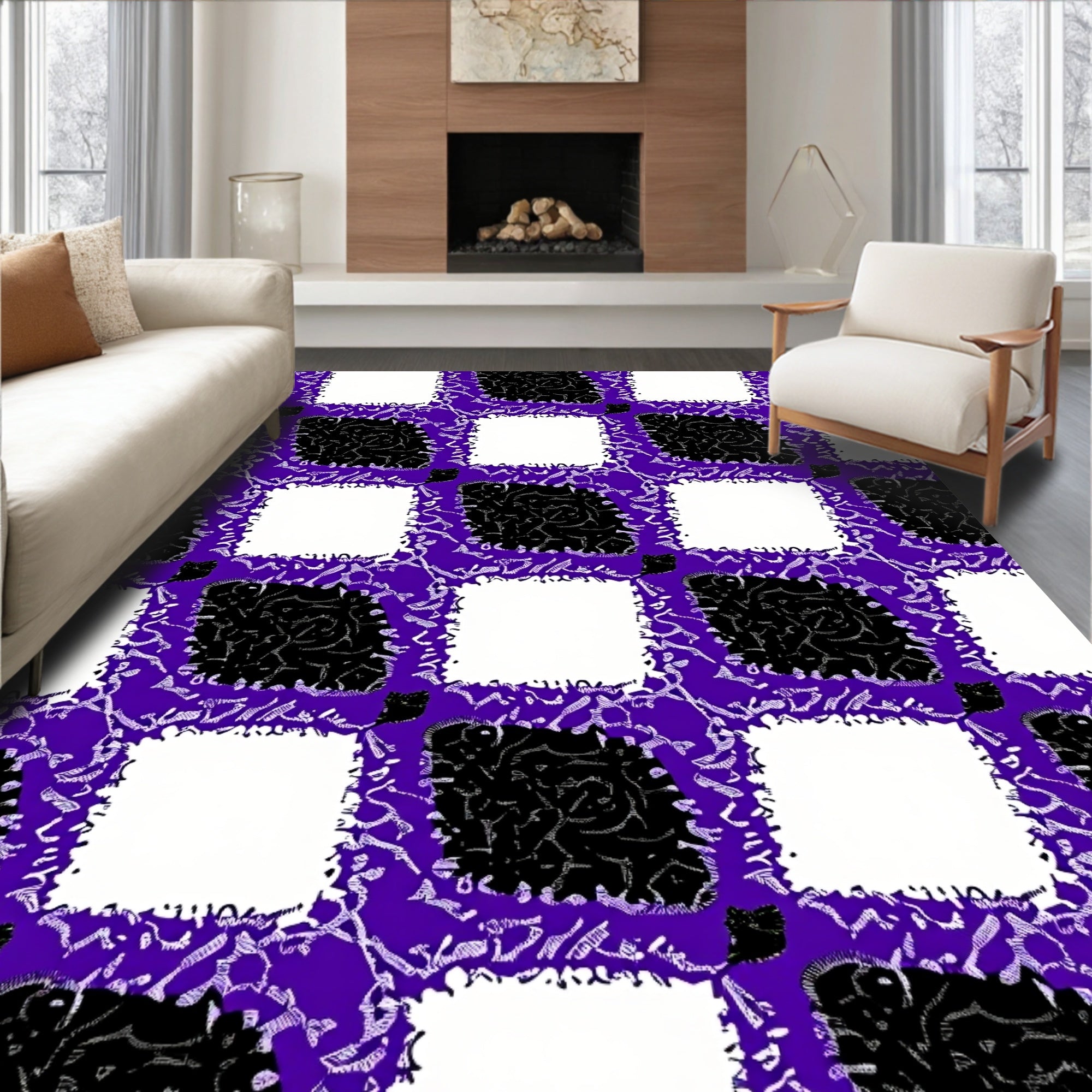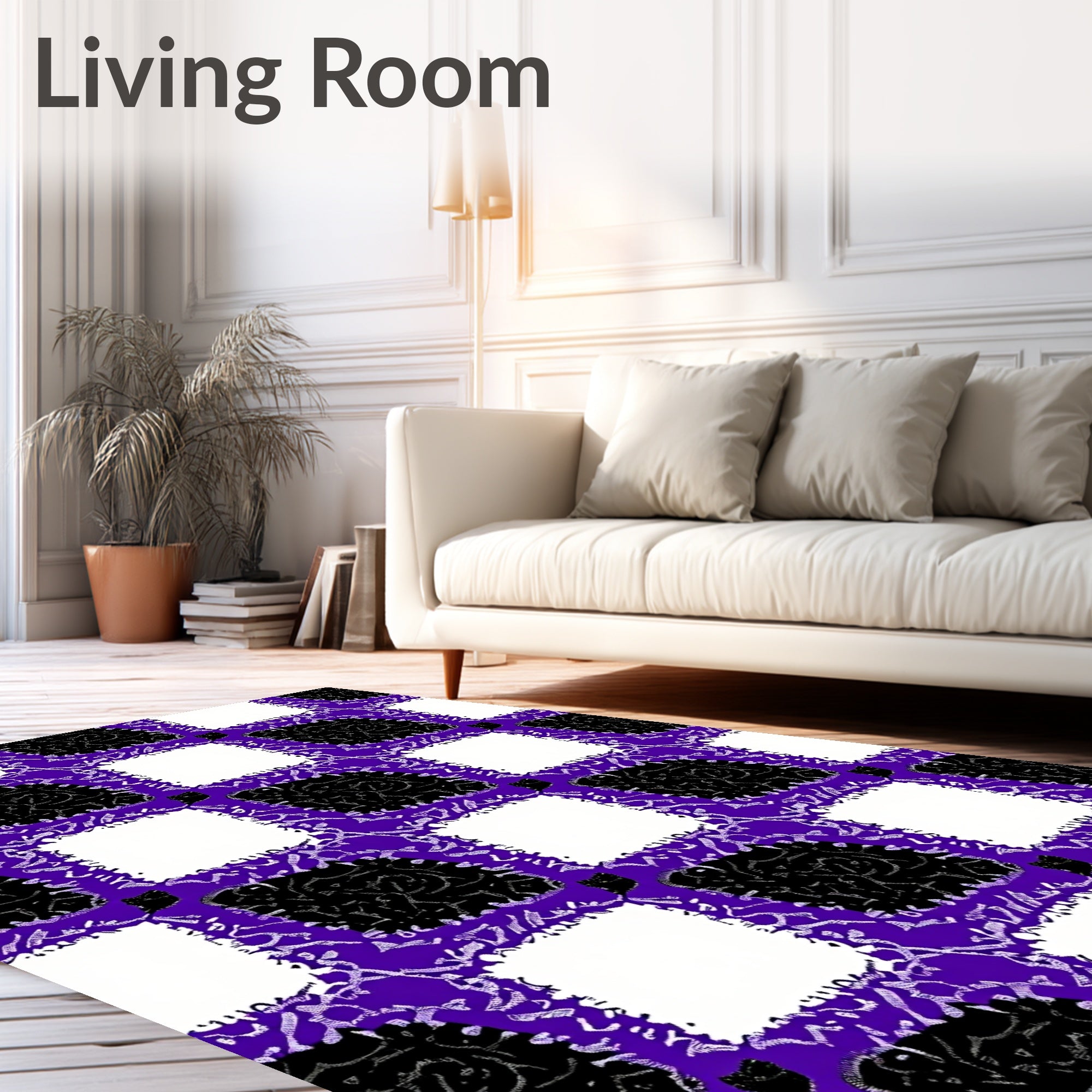 Ultra Soft Area Rug, Non Slip, Stain Resistant, Washable Area Rugs for Living Room, Bedroom, Heritage Gingham with Retro Checkerboard Flair(Purple) Overview: