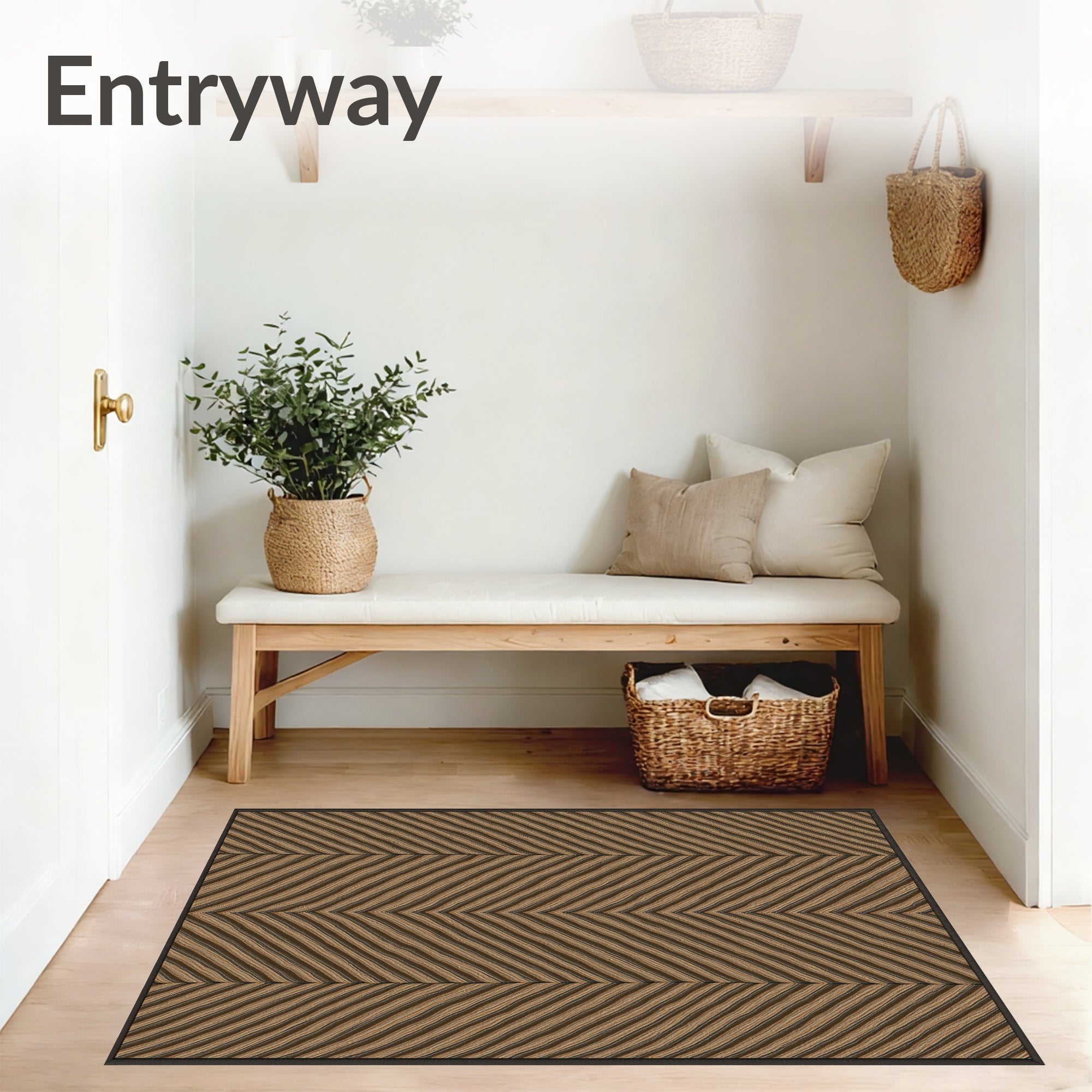 Flatwoven High Traffic Area Rug, Herringbone Design with Contemporary Texture, Non Slip, Stain Resistant, Washable Area Rugs for Living Room, Bedroom (Brown) Overview: