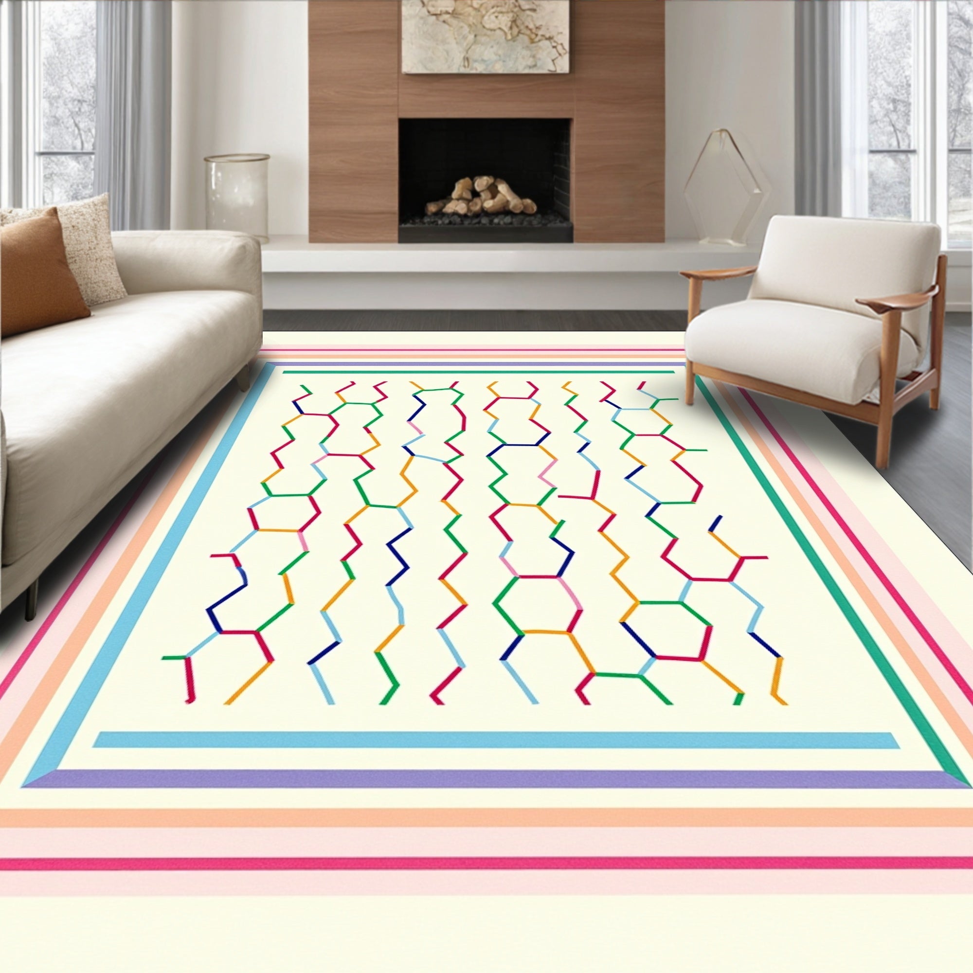 - Modern, artistic: Add a piece of modern charm from ODIKA to your bedroom collection. Designed with the art of minimalism, this rug is sure to provide your bedroom with coziness.