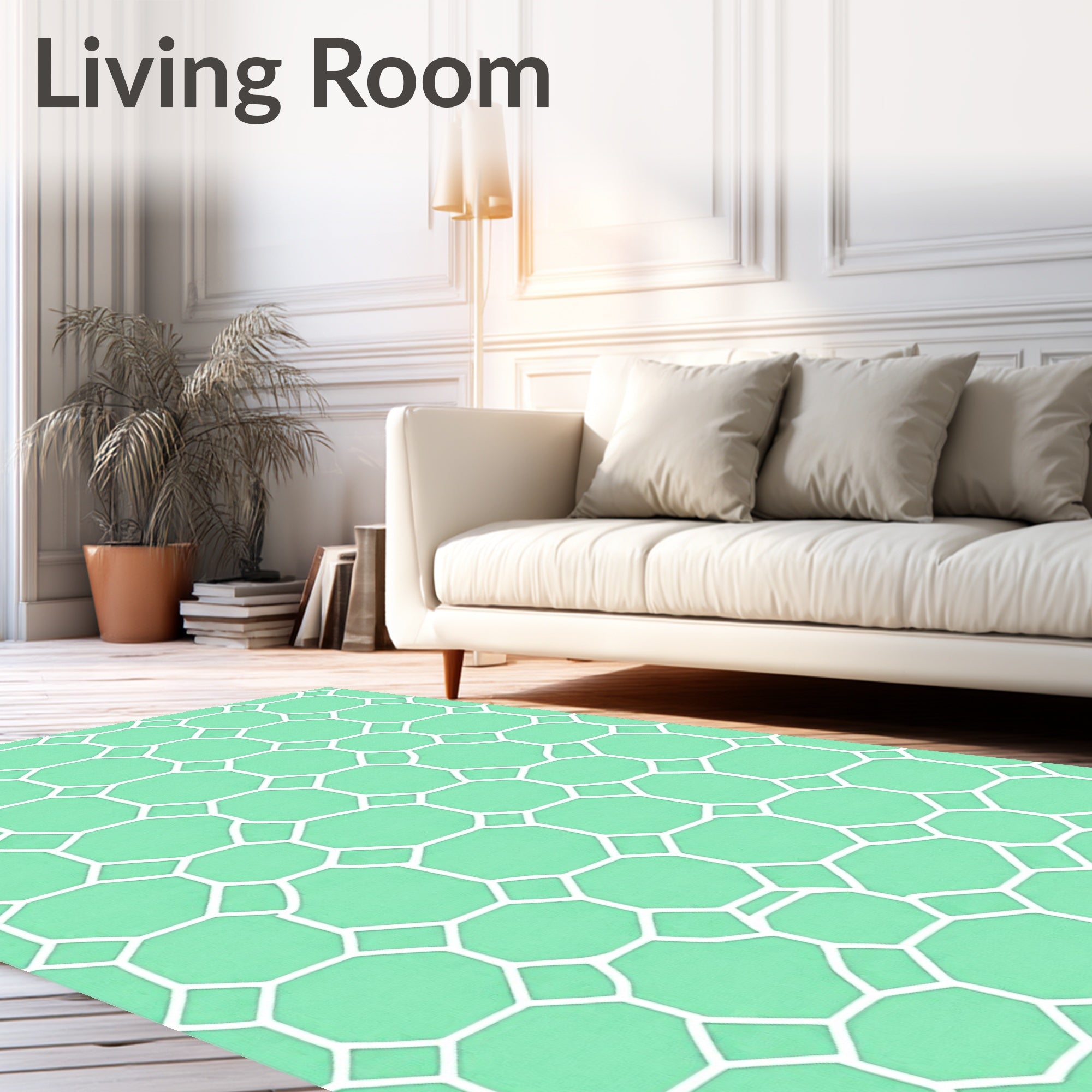 Ultra Soft Area Rug, Non Slip, Stain Resistant, Washable Area Rugs for Living Room, Bedroom, Hexagonal Honeycomb Tessellation Modern Accent(Green) Overview: