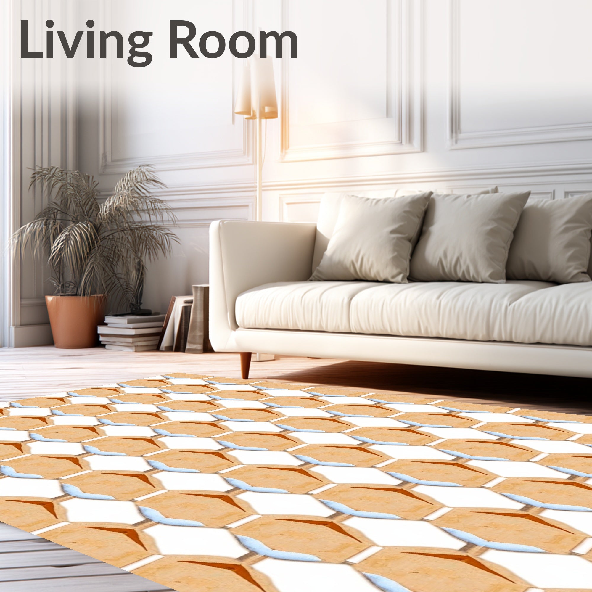 Ultra Soft Area Rug, Non Slip, Stain Resistant, Washable Area Rugs for Living Room, Bedroom, Hexagonal Honeycomb with Contemporary Edge(Beige) Overview: