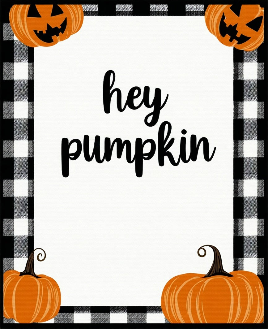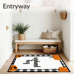 Hey Pumpkin Area Rug Thanksgiving Plaid Entrance Decor(Black)