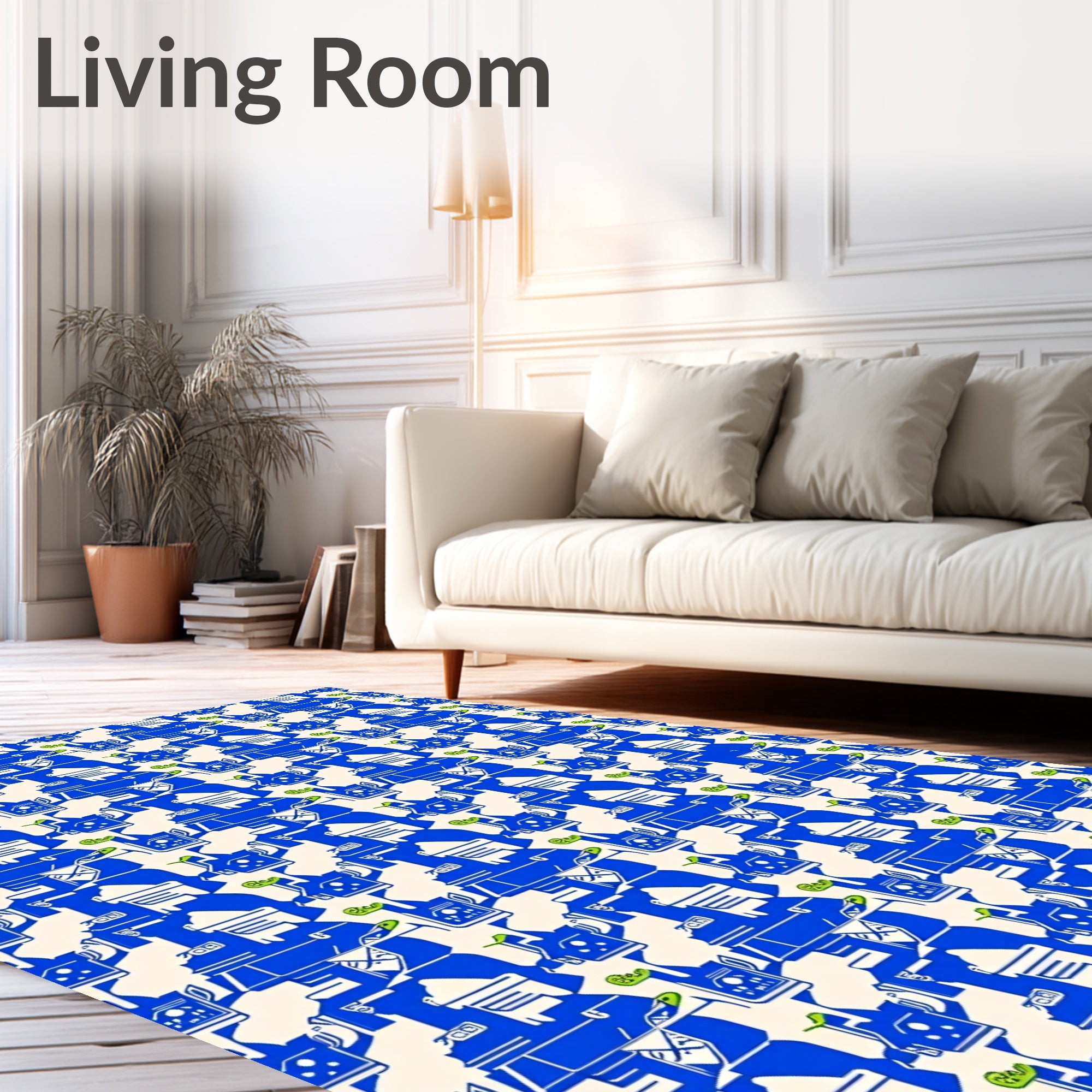 Ultra Soft Area Rug, Non Slip, Stain Resistant, Washable Area Rugs for Living Room, Bedroom, Highland Countryside Boxed Decorative Statement(Blue) Overview: