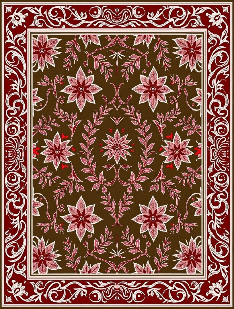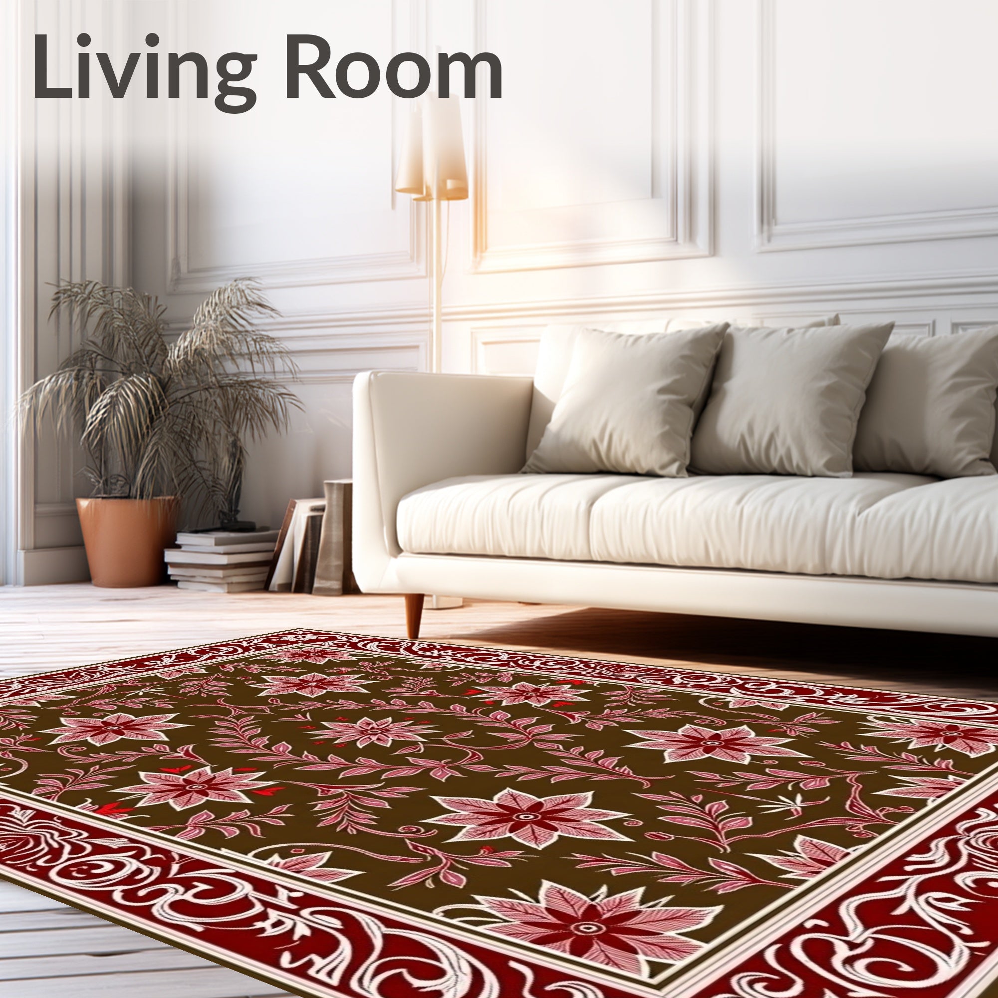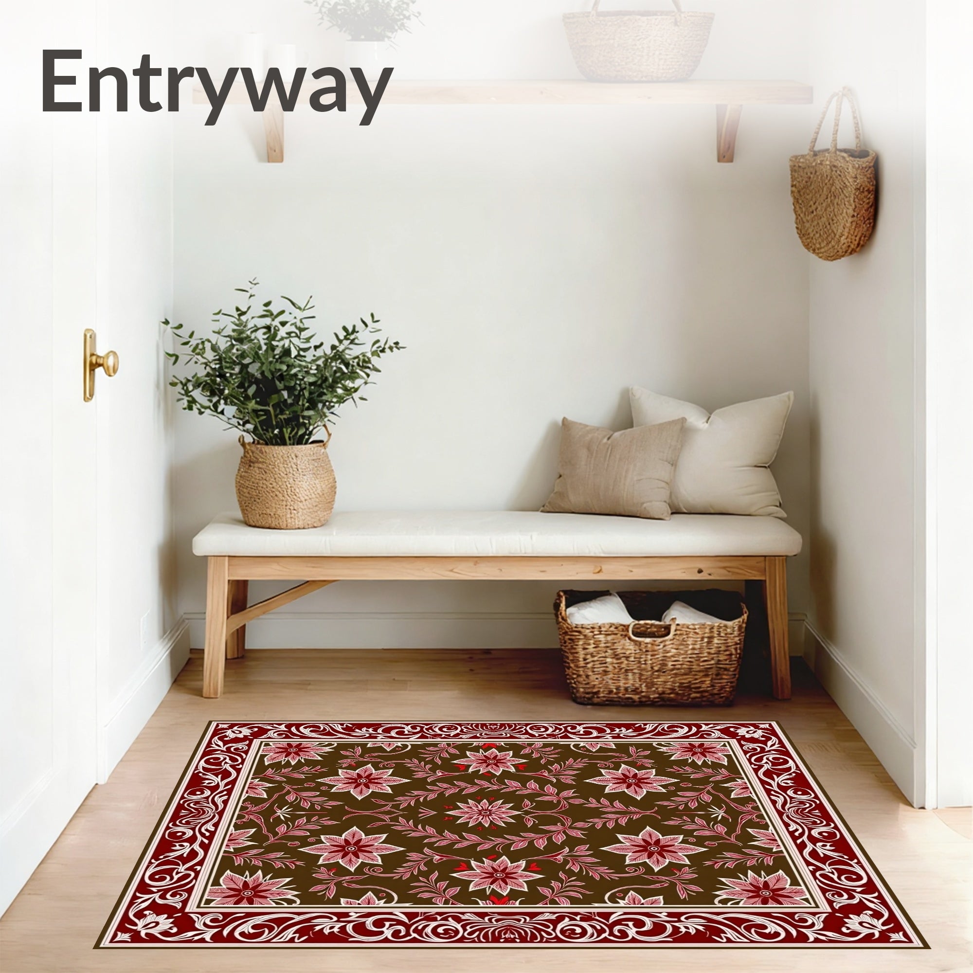 Flatwoven High Traffic Area Rug, Holiday Botanical Scrollwork with Poinsettia and Frosted Sprigs, Non Slip, Stain Resistant, Washable Area Rugs for Living Room, Bedroom (Brown) Overview: