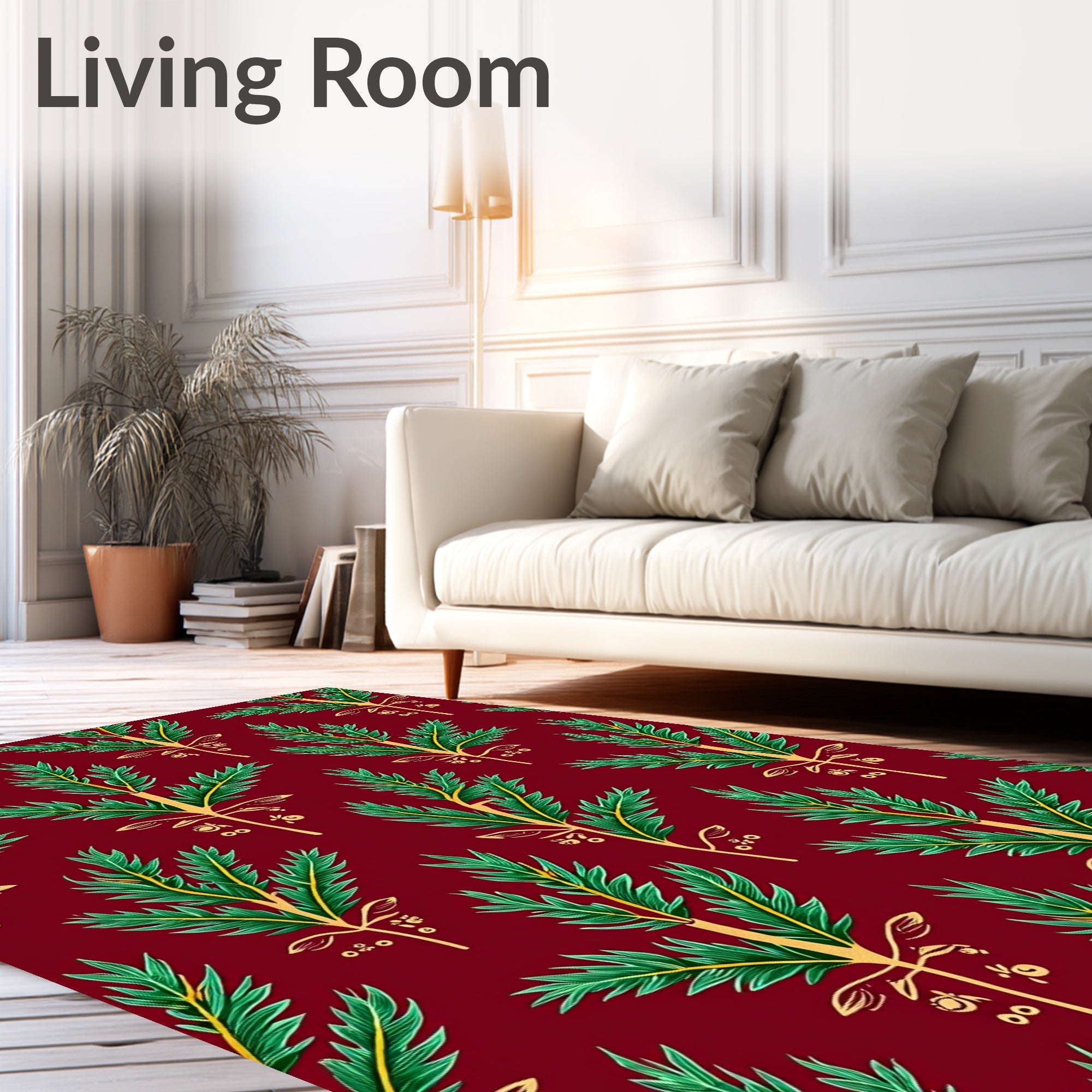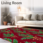 Ultra Soft Area Rug, Non Slip, Stain Resistant, Washable Area Rugs for Living Room, Bedroom, Holiday Celebration Featuring Ornamental Pine Branch(Red) Overview: