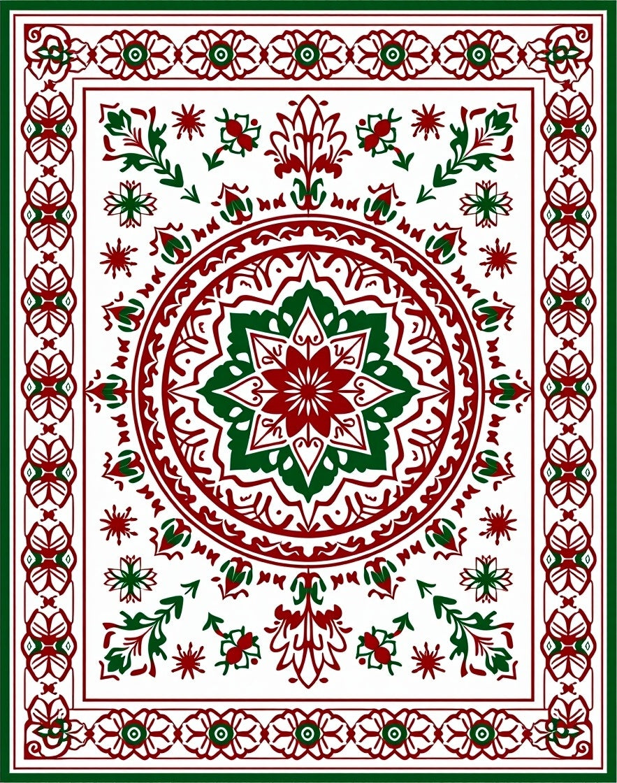 Holiday Festive Snowflake Area with Ornate Winter Motifs(Red)