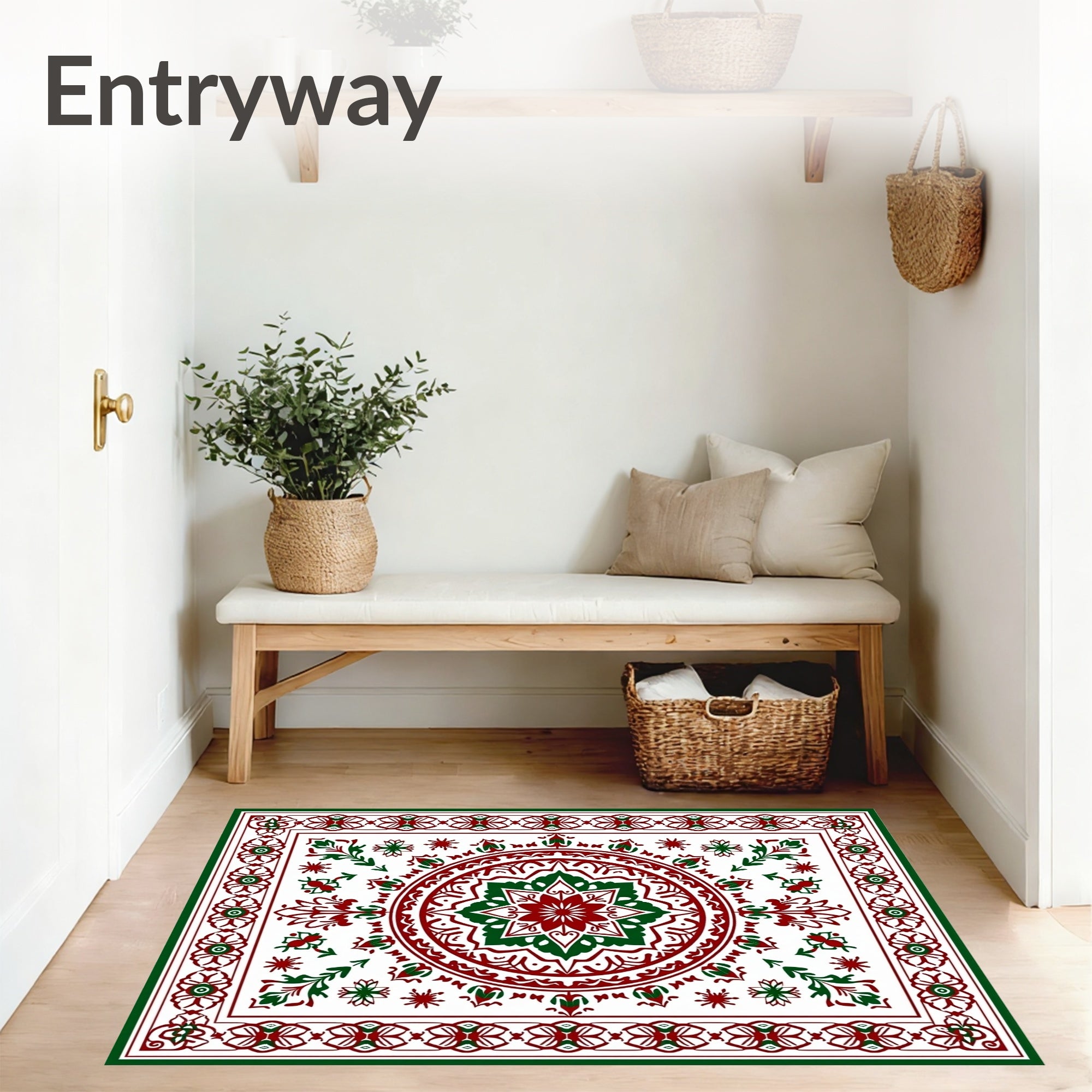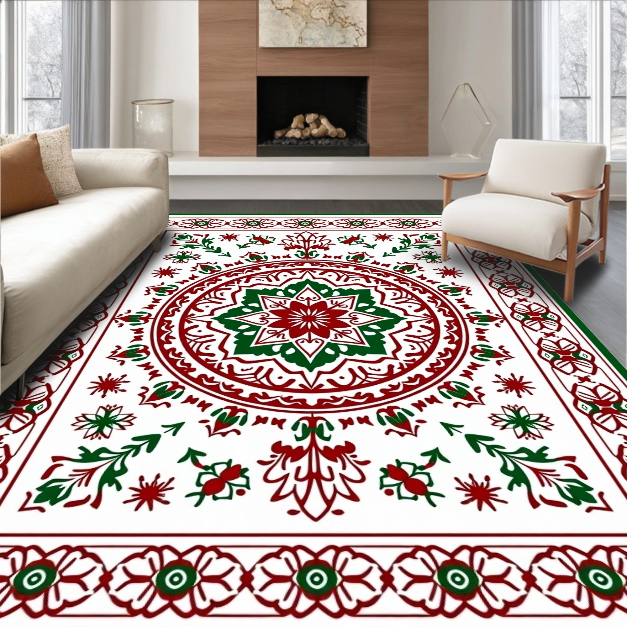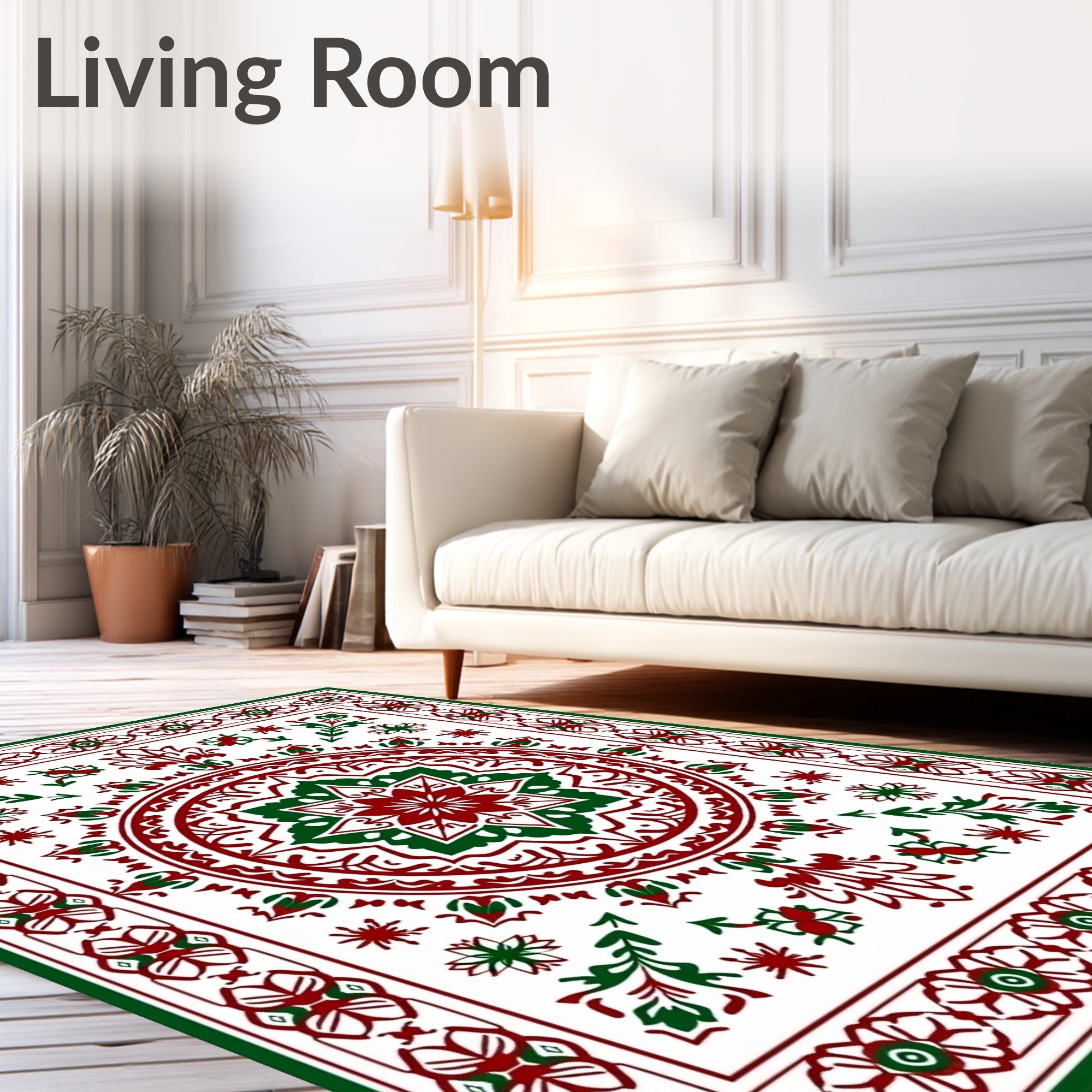 Ultra Soft Area Rug, Non Slip, Stain Resistant, Washable Area Rugs for Living Room, Bedroom, Holiday Festive Snowflake Area with Ornate Winter Motifs(Red) Overview: