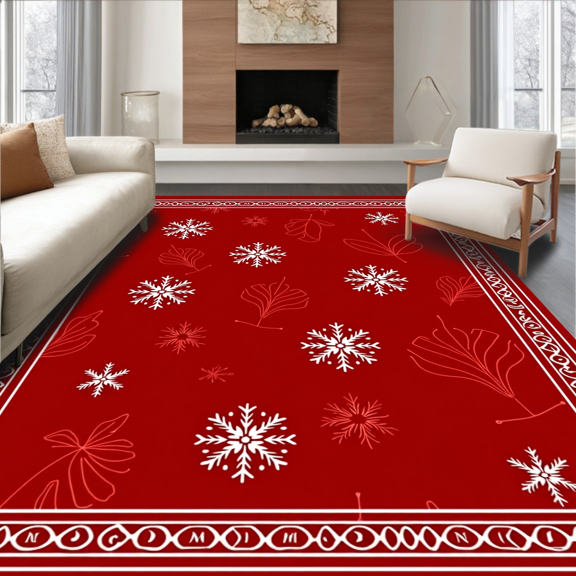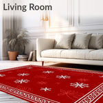 Ultra Soft Area Rug, Non Slip, Stain Resistant, Washable Area Rugs for Living Room, Bedroom, Holiday Filigree with Stylized Botanical Swirls(Red) Overview: